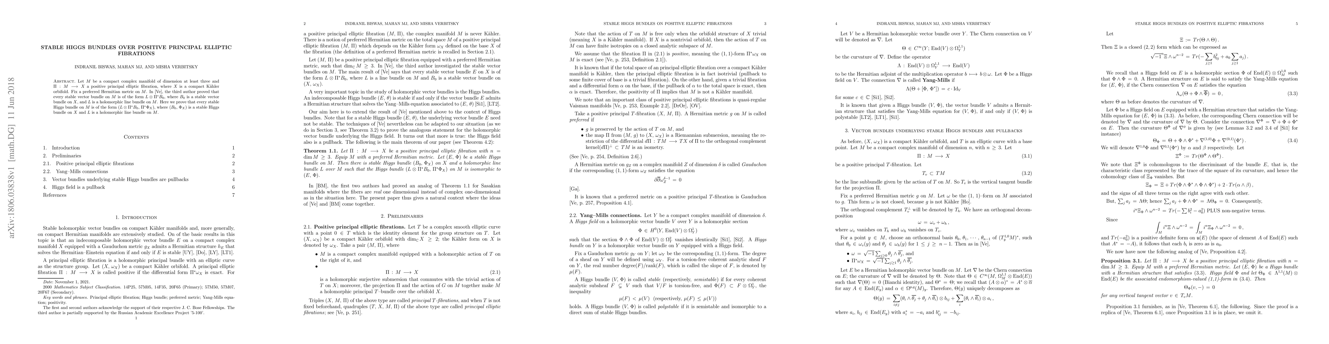 Let $M$ be a compact complex manifold of dimension at least three and $\Pi : M\rightarrow X$ a positive principal elliptic fibration, where $X$ is a compact K\"ahler orbifold. Fix a preferred Hermitian metric on $M$. In \cite{V}, the third author proved that every stable vector bundle on $M$ is of the form $L\otimes \Pi^*B_0$, where $B_0$ is a stable vector bundle on $X$, and $L$ is a holomorphic line bundle on $M$. Here we prove that every stable Higgs bundle on $M$ is of the form $(L\otimes \Pi^*B_0,\Pi^*\Phi_X)$, where $(B_0, \Phi_X)$ is a stable Higgs bundle on $X$ and $L$ is a holomorphic line bundle on $M$.