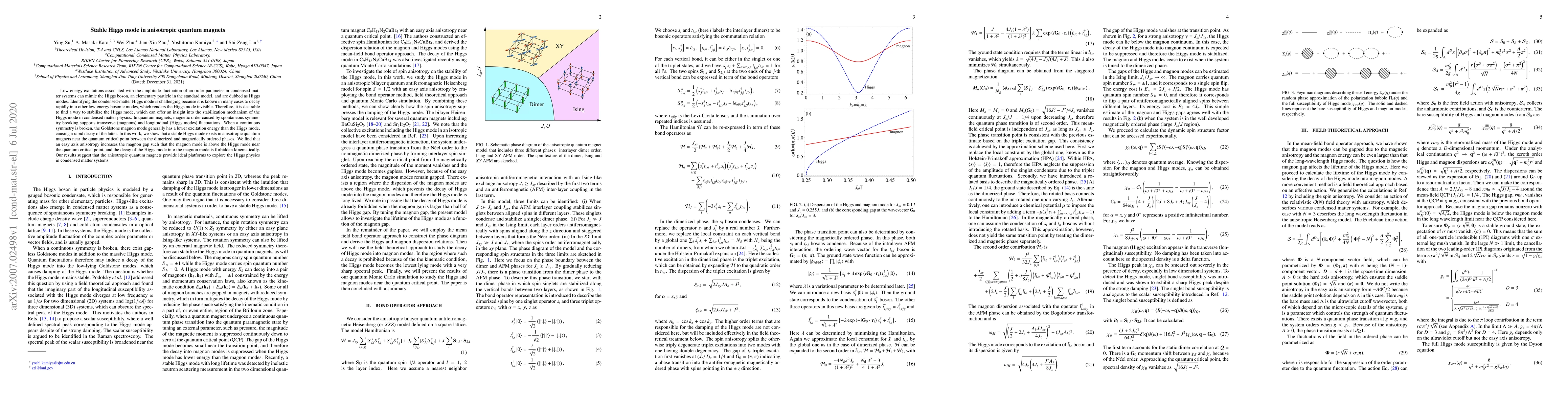 This paper demonstrates the existence of a stable Higgs mode in anisotropic quantum magnets near the quantum critical point, where easy axis anisotropy elevates the magnon gap, preventing the decay of the Higgs mode into magnons. This finding offers a promising platform for studying Higgs physics in condensed matter systems.