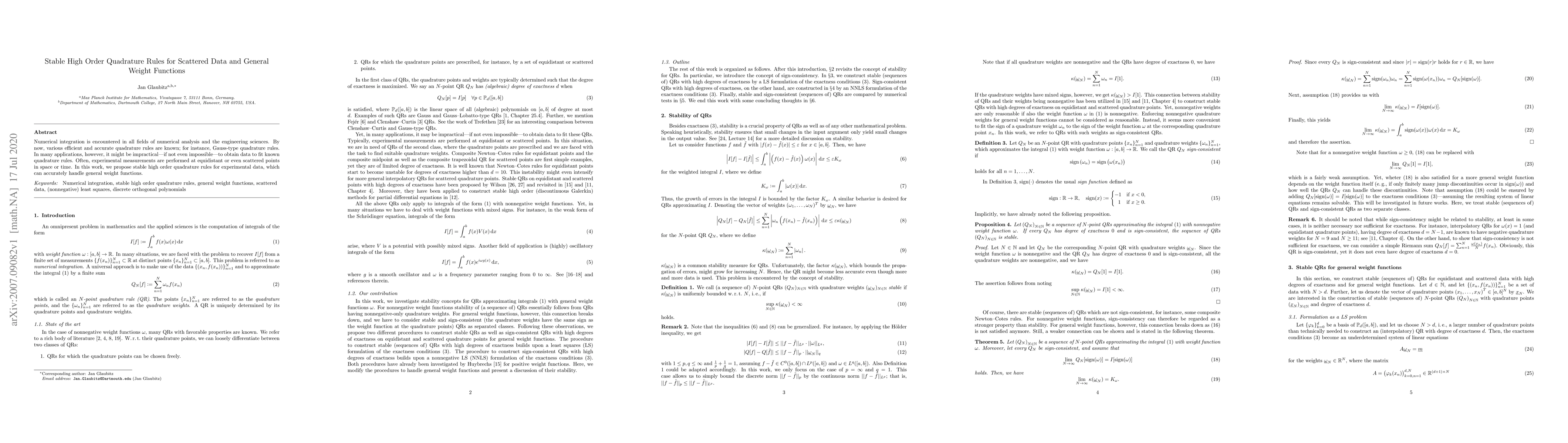 This paper proposes stable high-order quadrature rules for numerical integration of experimental data, particularly when measurements are scattered. These methods accurately handle general weight functions, offering a practical solution for applications where traditional quadrature rules are infeasible.