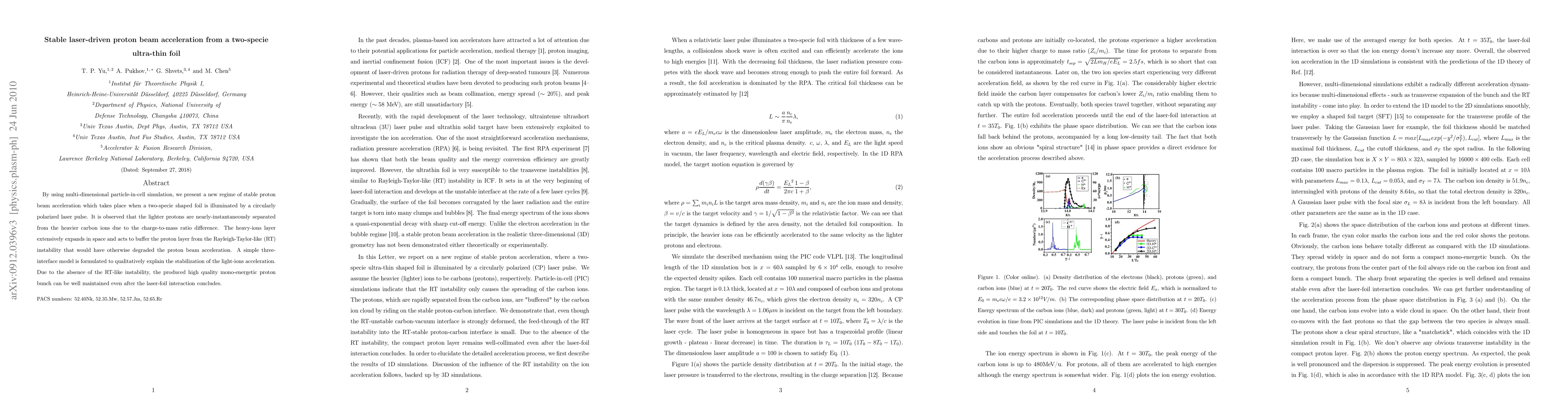 A two-species ultra-thin foil target was used to study the effects of laser radiation on proton acceleration.