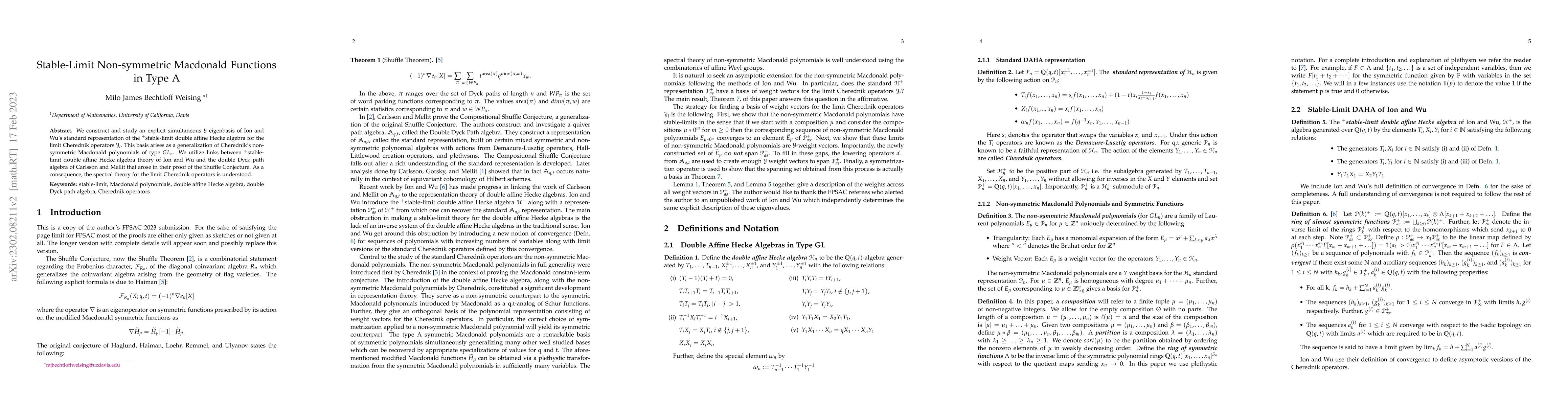 We construct and study an explicit simultaneous $\mathscr{Y}$ eigenbasis of Ion and Wu's standard representation of the $^+$stable-limit double affine Hecke algebra for the limit Cherednik operators $\mathscr{Y}_i$. This basis arises as a generalization of Cherednik's non-symmetric Macdonald polynomials of type $GL_n$. We utilize links between $^+$stable-limit double affine Hecke algebra theory of Ion and Wu and the double Dyck path algebra of Carlsson and Mellit that arose in their proof of the Shuffle Conjecture. As a consequence, the spectral theory for the limit Cherednik operators is understood.