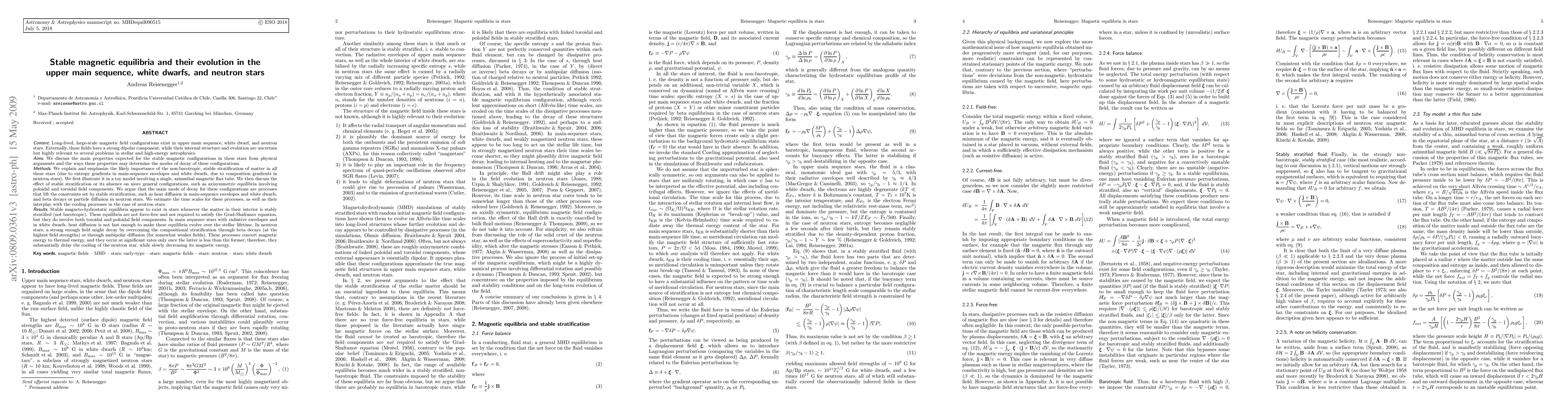 This paper explores stable magnetic equilibria in upper main sequence stars, white dwarfs, and neutron stars, emphasizing their internal structure and evolution. It argues that these configurations decay primarily through processes like heat diffusion and beta decays, which convert magnetic energy to thermal energy, significantly impacting the cooling rates of neutron stars.