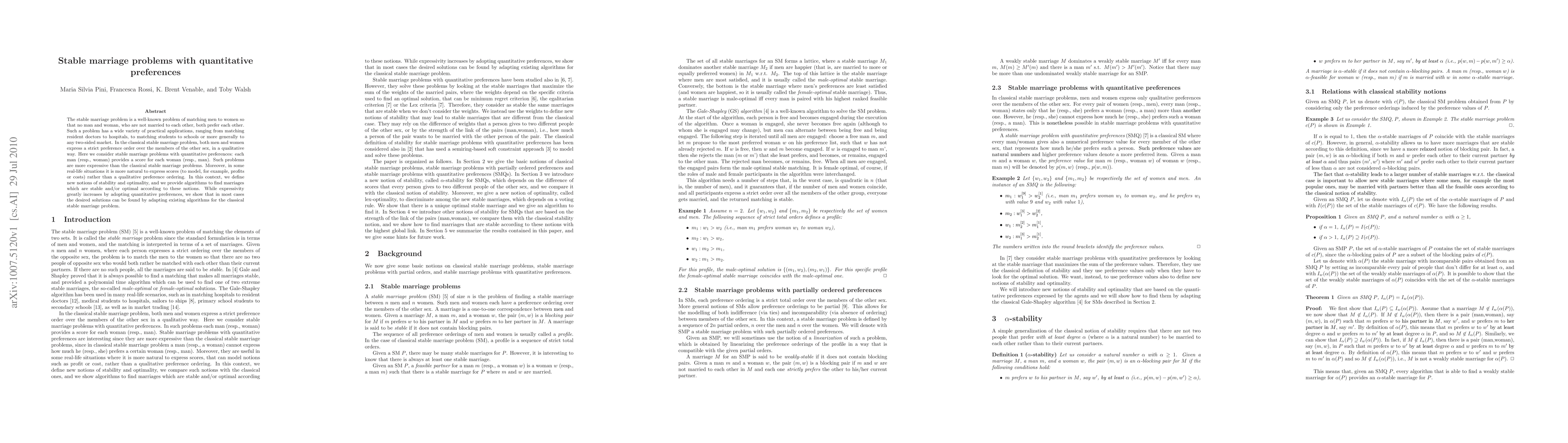 This paper explores the stable marriage problem with quantitative preferences, where individuals assign scores instead of strict preference orders, enhancing the problem's expressivity. It introduces new stability and optimality definitions and provides algorithms to find stable or optimal solutions, demonstrating that existing classical algorithms can often be adapted for these quantitative scenarios.