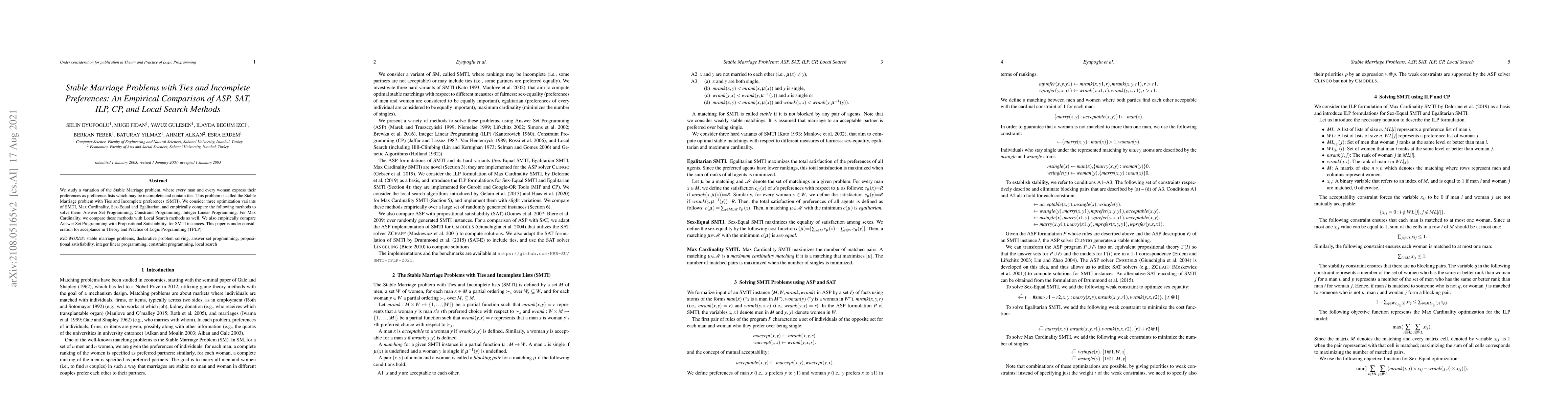 This paper investigates the Stable Marriage problem with Ties and Incomplete preferences (SMTI), comparing Answer Set Programming, Constraint Programming, Integer Linear Programming, and Local Search methods for solving its optimization variants. The empirical study assesses the performance of these techniques for Max Cardinality, Sex-Equal, and Egalitarian variants.