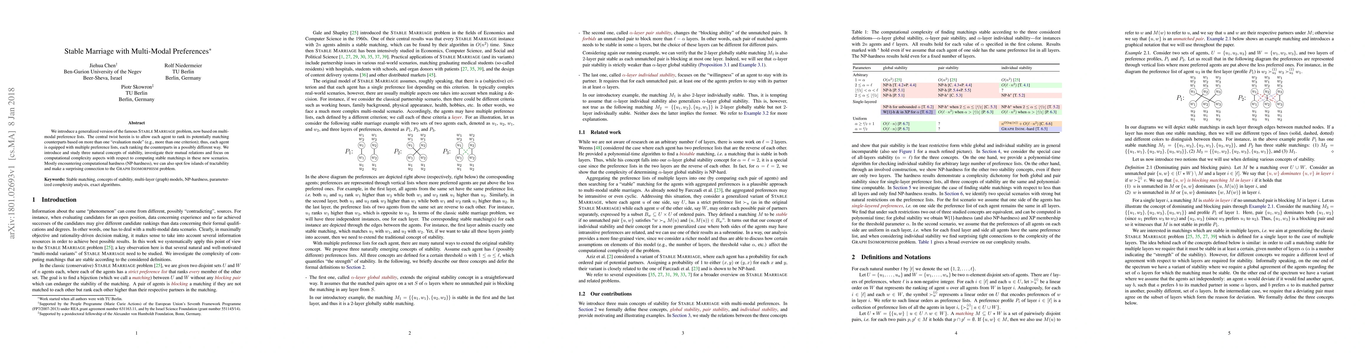 This paper generalizes the Stable Marriage problem to accommodate agents with multi-modal preference lists, allowing each agent to rank counterparts based on multiple criteria. It explores three stability concepts, examines their relationships, and highlights computational complexity, revealing NP-hardness but also identifying some tractable cases and a link to the Graph Isomorphism problem.