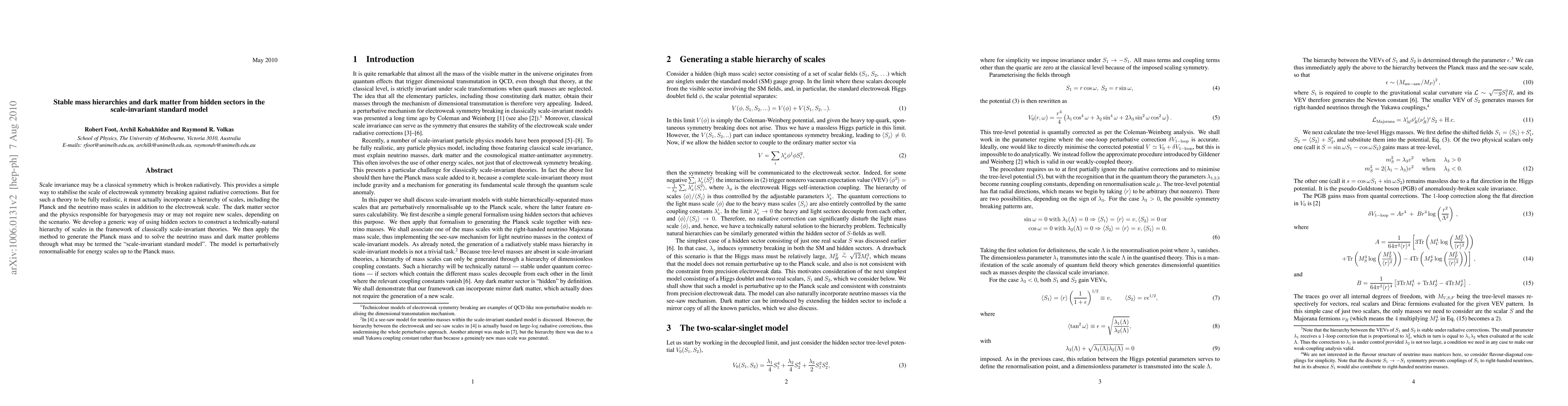 This paper proposes a scale-invariant standard model that incorporates hidden sectors to naturally establish a hierarchy of scales, including the Planck and neutrino mass scales. It addresses dark matter and baryogenesis within this framework, ensuring the model remains perturbatively renormalizable up to the Planck mass.