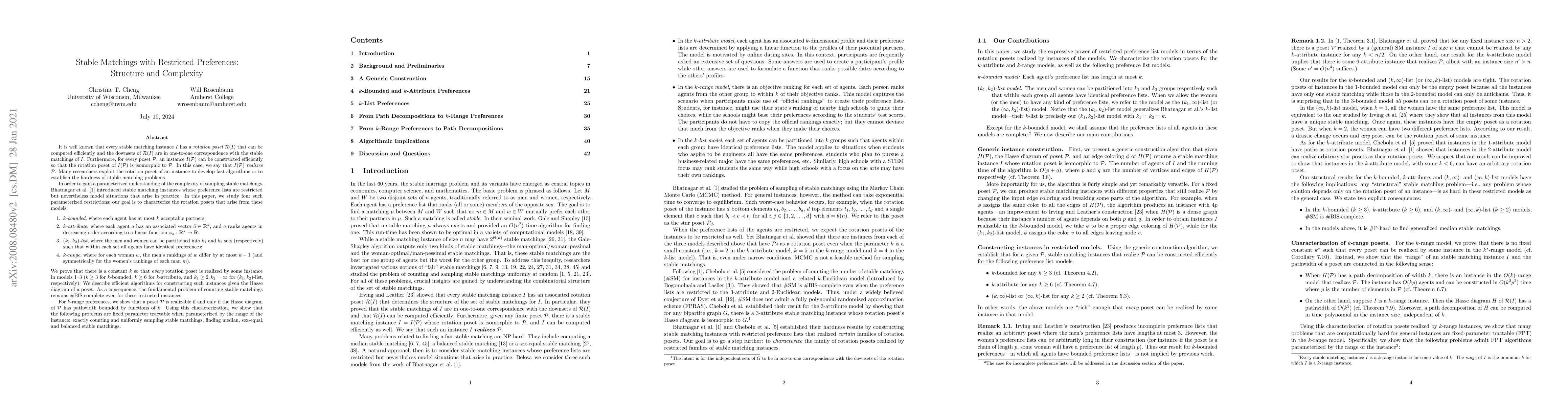 It is well known that every stable matching instance $I$ has a rotation poset $R(I)$ that can be computed efficiently and the downsets of $R(I)$ are in one-to-one correspondence with the stable matchings of $I$. Furthermore, for every poset $P$, an instance $I(P)$ can be constructed efficiently so that the rotation poset of $I(P)$ is isomorphic to $P$. In this case, we say that $I(P)$ realizes $P$. Many researchers exploit the rotation poset of an instance to develop fast algorithms or to establish the hardness of stable matching problems. In order to gain a parameterized understanding of the complexity of sampling stable matchings, Bhatnagar et al. [SODA 2008] introduced stable matching instances whose preference lists are restricted but nevertheless model situations that arise in practice. In this paper, we study four such parameterized restrictions; our goal is to characterize the rotation posets that arise from these models: $k$-bounded, $k$-attribute, $(k_1, k_2)$-list, $k$-range. We prove that there is a constant $k$ so that every rotation poset is realized by some instance in the first three models for some fixed constant $k$. We describe efficient algorithms for constructing such instances given the Hasse diagram of a poset. As a consequence, the fundamental problem of counting stable matchings remains $\#$BIS-complete even for these restricted instances. For $k$-range preferences, we show that a poset $P$ is realizable if and only if the Hasse diagram of $P$ has pathwidth bounded by functions of $k$. Using this characterization, we show that the following problems are fixed parameter tractable when parametrized by the range of the instance: exactly counting and uniformly sampling stable matchings, finding median, sex-equal, and balanced stable matchings.