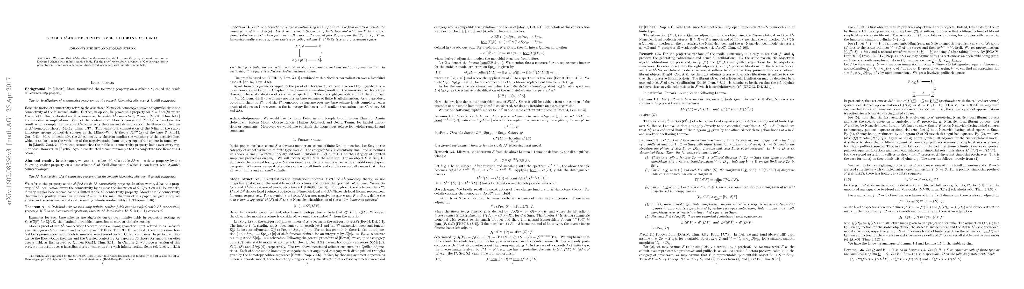We show that $\mathbb{A}^1$-localization decreases the Nisnevich-stalkwise connectivity by at most one over a Dedekind scheme with infinite residue fields. For the proof, we establish a Nisnevich-local version of Gabber's geometric presentation lemma over a henselian discrete valuation ring with infinite residue field.