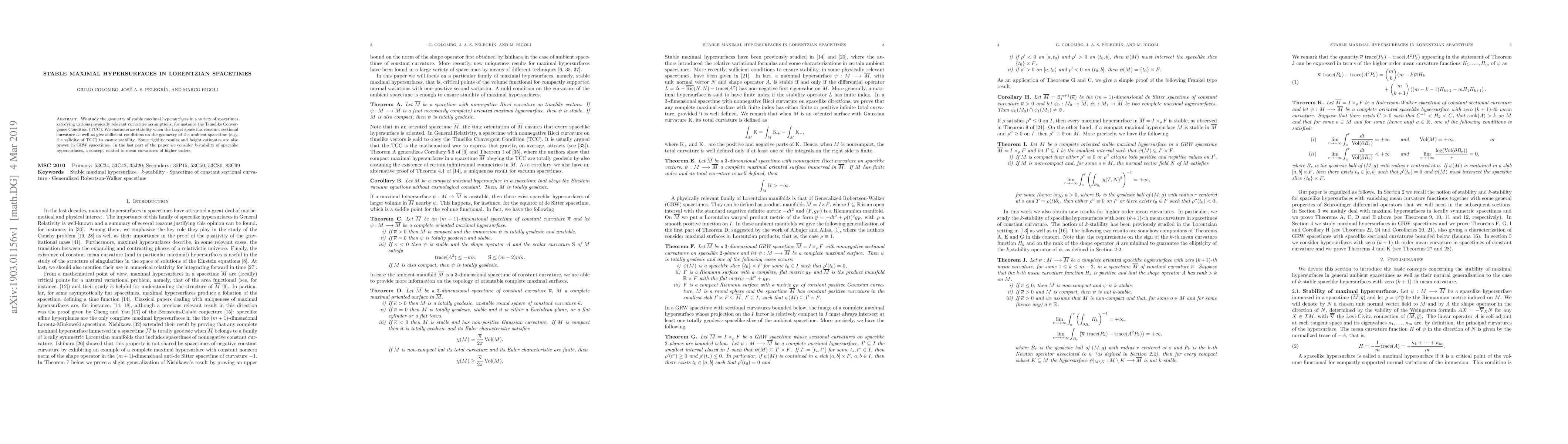 This paper studies stable maximal hypersurfaces in Lorentzian spacetimes, focusing on conditions for stability and rigidity results, with implications for understanding spacetime geometry.