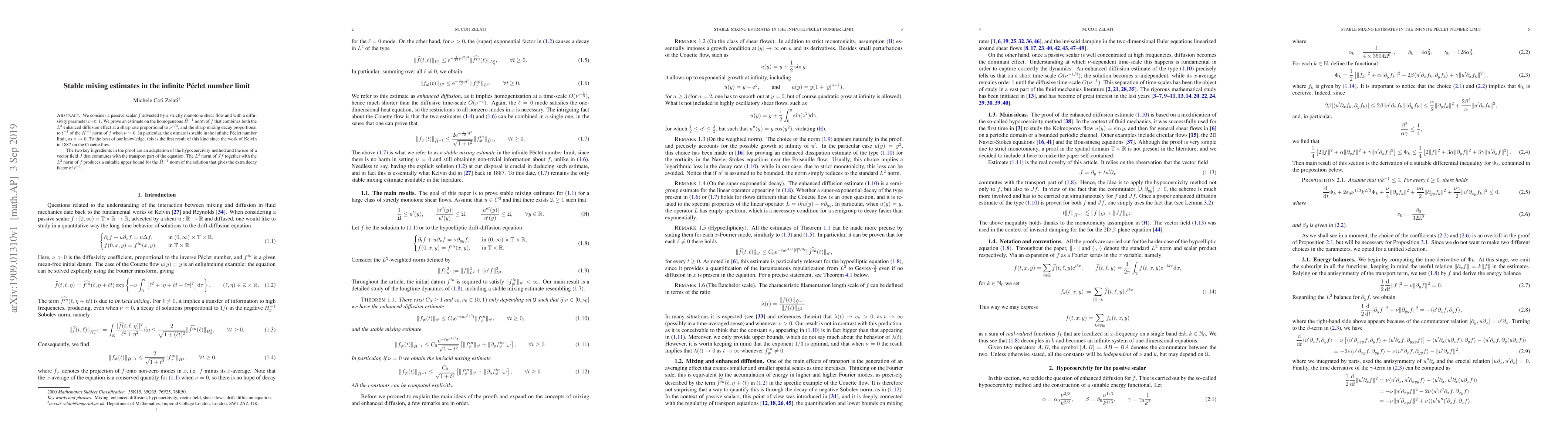 We consider a passive scalar $f$ advected by a strictly monotone shear flow and with a diffusivity parameter $\nu\ll 1$. We prove an estimate on the homogeneous $\dot{H}^{-1}$ norm of $f$ that combines both the $L^2$ enhanced diffusion effect at a sharp rate proportional to $\nu^{1/3}$, and the sharp mixing decay proportional to $t^{-1}$ of the $\dot{H}^{-1}$ norm of $f$ when $\nu=0$. In particular, the estimate is stable in the infinite P\'eclet number limit, as $\nu\to 0$. To the best of our knowledge, this is the first result of this kind since the work of Kelvin in 1887 on the Couette flow. The two key ingredients in the proof are an adaptation of the hypocoercivity method and the use of a vector field $J$ that commutes with the transport part of the equation. The $L^2$ norm of $Jf$ together with the $L^2$ norm of $f$ produces a suitable upper bound for the $\dot{H}^{-1}$ norm of the solution that gives the extra decay factor of $t^{-1}$.