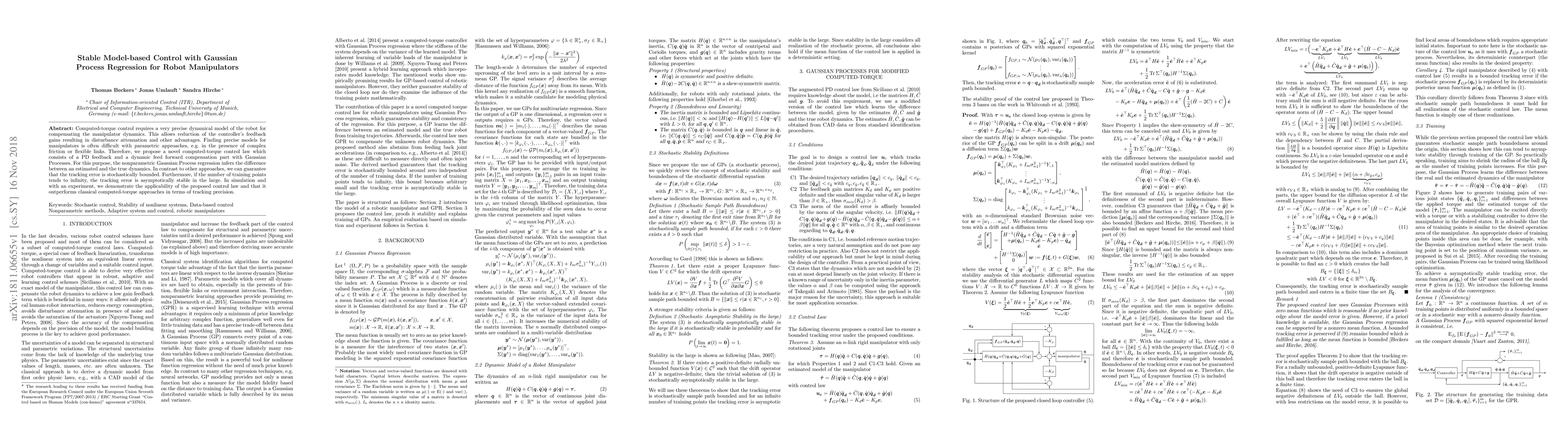 A novel computed-torque control law using Gaussian Process regression improves tracking precision in robot manipulators, offering stochastic bounds on error and asymptotic stability with infinite training points.
