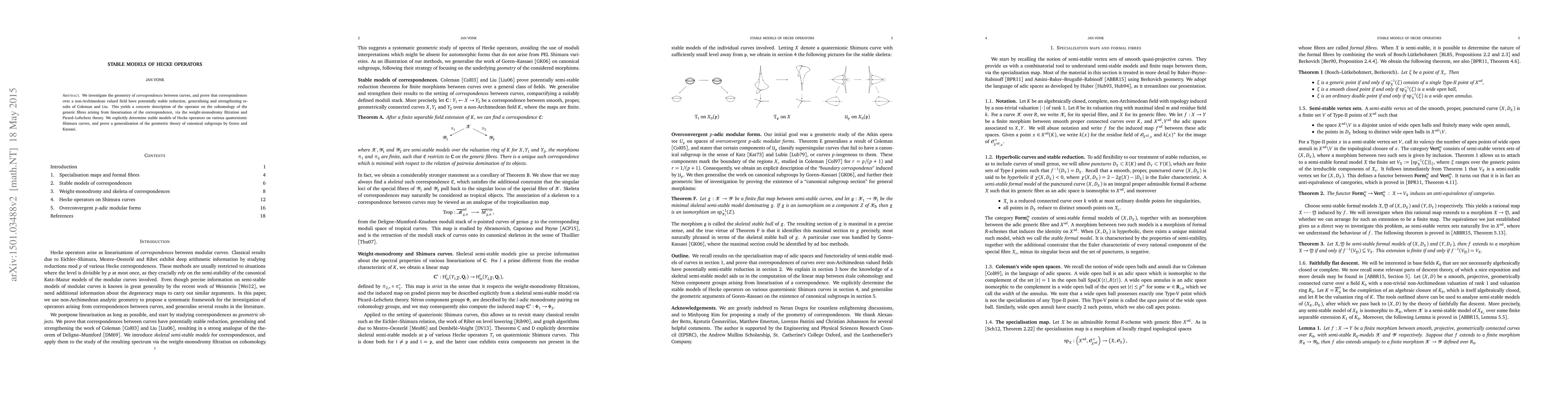 We investigate the geometry of correspondences between curves, and prove that correspondences over a non-Archimedean valued field have potentially stable reduction, generalising and strengthening results of Coleman and Liu. This yields a concrete description of the operator on the cohomology of the generic fibres arising from linearisation of the correspondence, via the weight-monodromy filtration and Picard-Lefschetz theory. We explicitly determine stable models of Hecke operators on various quaternionic Shimura curves, and prove a generalisation of the geometric theory of canonical subgroups by Goren and Kassaei.