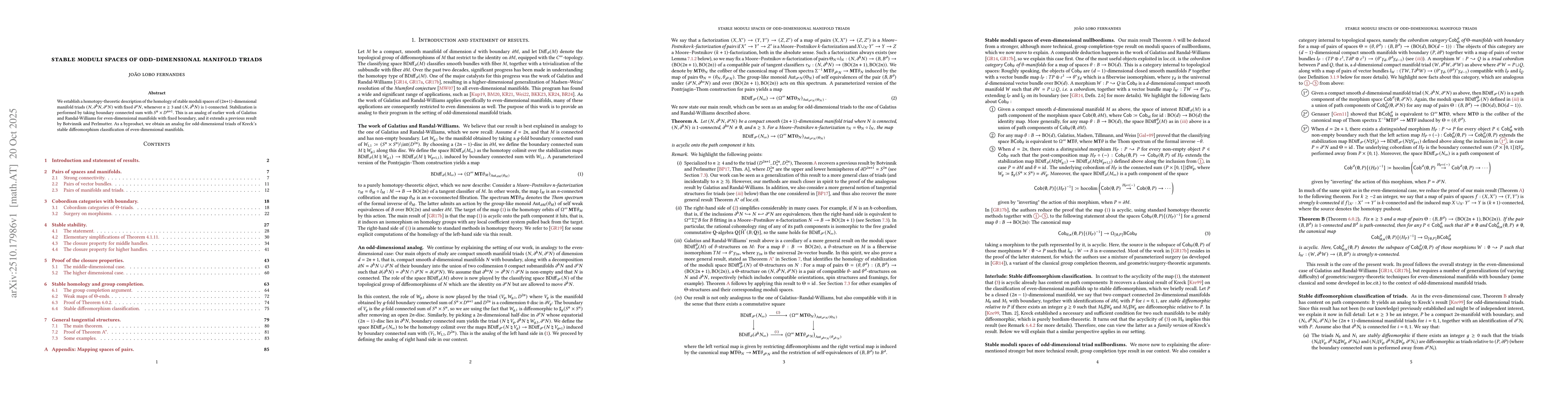 The research employs a combination of algebraic topology and differential geometry techniques to analyze the structure of odd-dimensional manifold triads. It utilizes semi-simplicial spaces, homotopy colimits, and bundle theory to construct and study these complex topological structures.