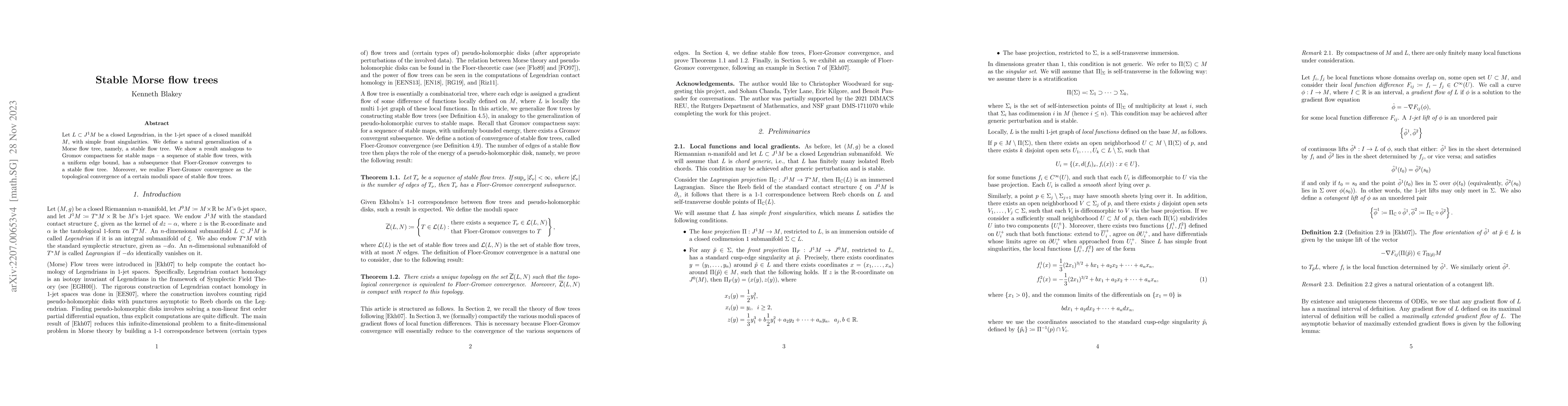 This paper generalizes Morse flow trees to stable flow trees for closed Legendrians in the 1-jet space of a closed manifold, demonstrating Gromov-style compactness and realizing Floer-Gromov convergence as topological convergence of a moduli space of stable flow trees.