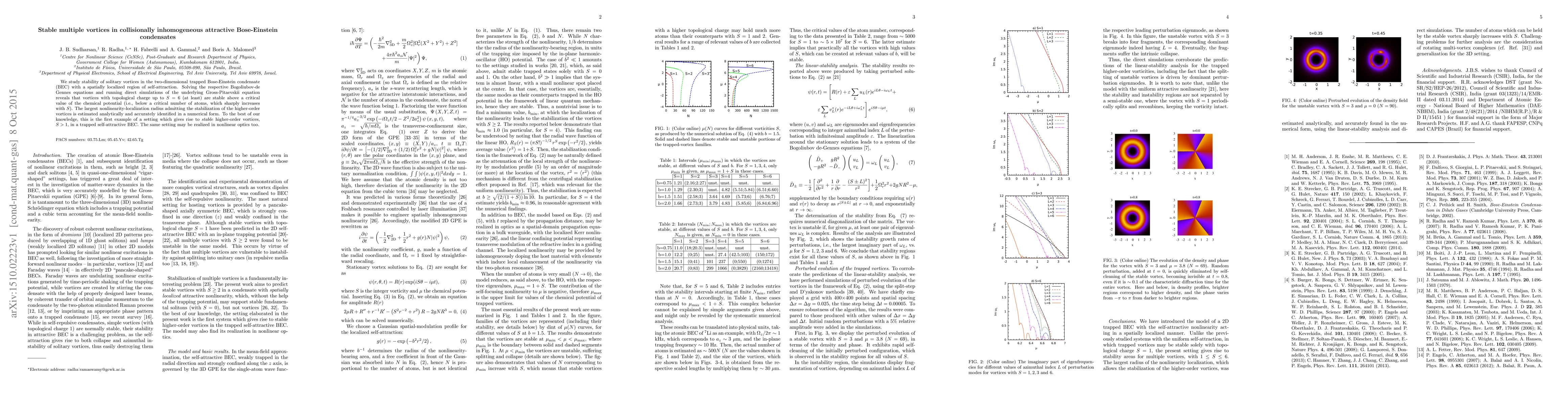 We study stability of solitary vortices in the two-dimensional trapped Bose-Einstein condensate (BEC) with a spatially localized region of self-attraction. Solving the respective Bogoliubov-de Gennes equations and running direct simulations of the underlying Gross-Pitaevskii equation reveals that vortices with topological charge up to S = 6 (at least) are stable above a critical value of the chemical potential (i.e., below a critical number of atoms, which sharply increases with S). The largest nonlinearity-localization radius admitting the stabilization of the higher-order vortices is estimated analytically and accurately identified in a numerical form. To the best of our knowledge, this is the first example of a setting which gives rise to stable higher-order vortices, S > 1, in a trapped self-attractive BEC. The same setting may be realized in nonlinear optics too.