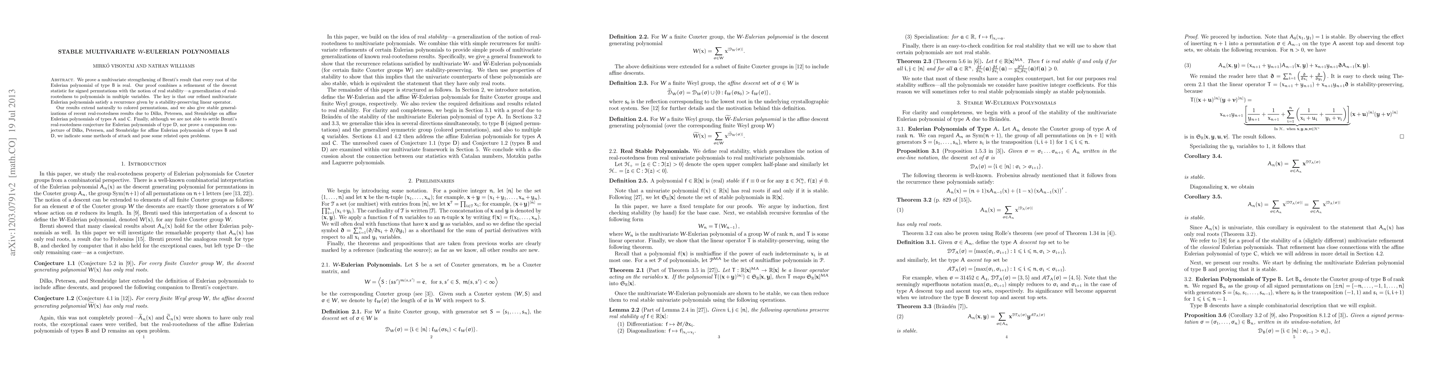 This paper strengthens Brenti's result on real roots of Eulerian polynomials by proving stability for multivariate $W$-Eulerian polynomials, utilizing a refined descent statistic and real stability. It extends these findings to colored permutations and generalizes recent real-rootedness results for affine Eulerian polynomials.
