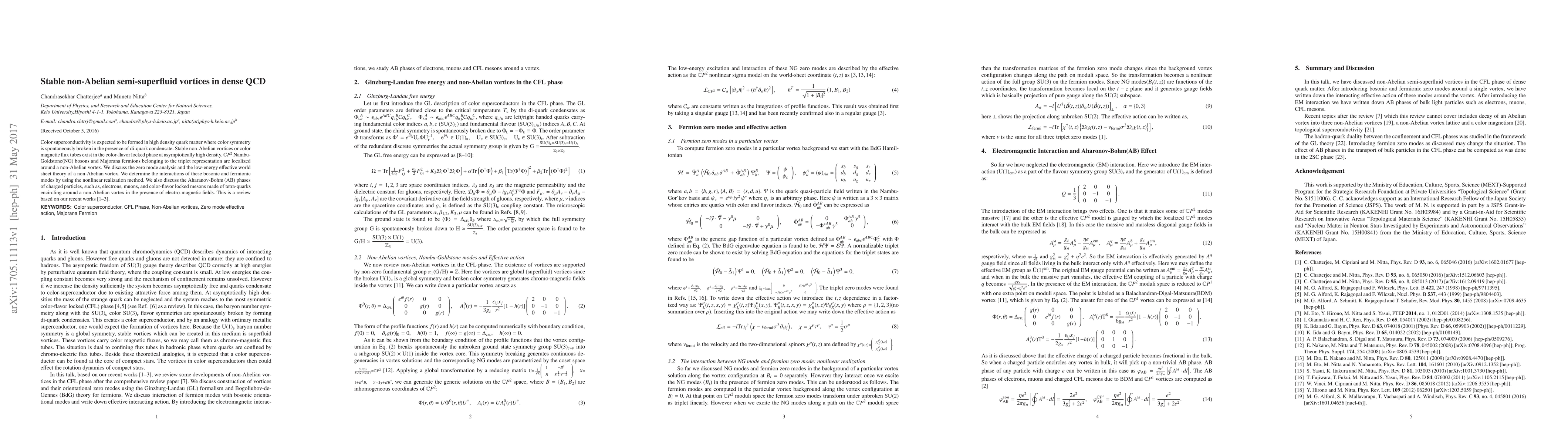This paper reviews stable non-Abelian vortices in dense QCD, focusing on color superconductivity and the color-flavor locked phase. It analyzes the interactions of Nambu-Goldstone bosons and Majorana fermions around these vortices, and discusses the Aharonov-Bohm phases for charged particles encircling the vortices in electromagnetic fields.