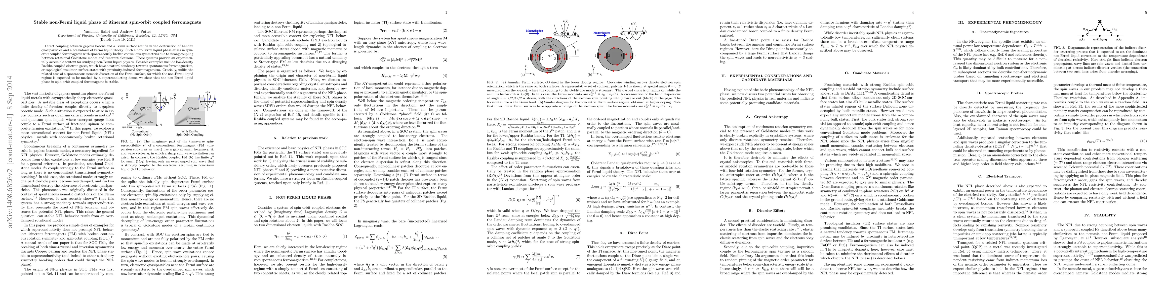 This paper explores the stable non-Fermi liquid phase in itinerant spin-orbit coupled ferromagnets, where strong coupling between rotational Goldstone modes and electrons disrupts Landau quasiparticles. Unlike nematic distortions, this phase remains stable without being overshadowed by superconductivity.