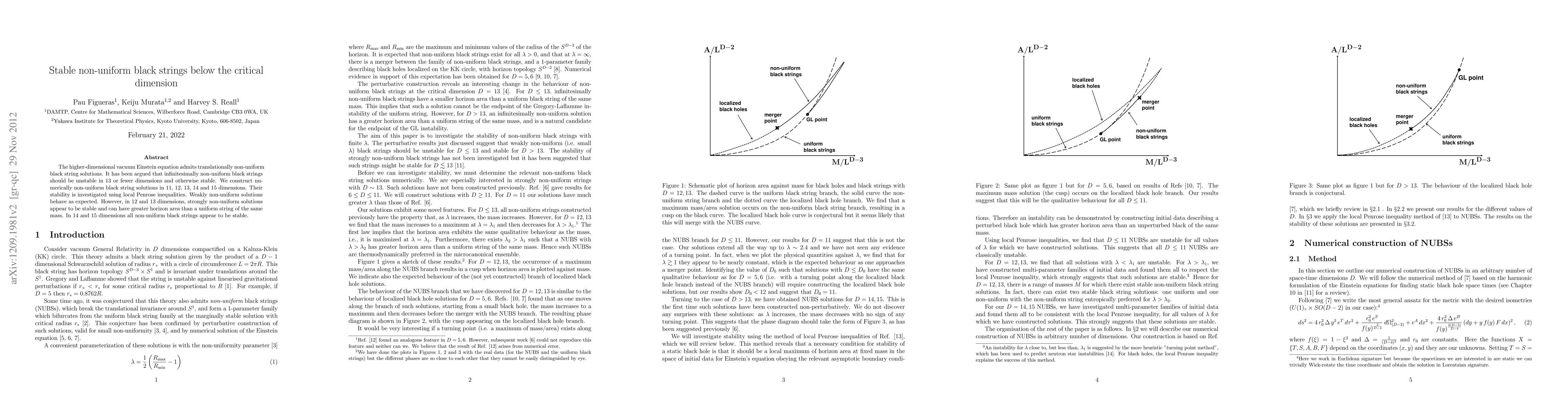 The higher-dimensional vacuum Einstein equation admits translationally non-uniform black string solutions. It has been argued that infinitesimally non-uniform black strings should be unstable in 13 or fewer dimensions and otherwise stable. We construct numerically non-uniform black string solutions in 11, 12, 13, 14 and 15 dimensions. Their stability is investigated using local Penrose inequalities. Weakly non-uniform solutions behave as expected. However, in 12 and 13 dimensions, strongly non-uniform solutions appear to be stable and can have greater horizon area than a uniform string of the same mass. In 14 and 15 dimensions all non-uniform black strings appear to be stable.