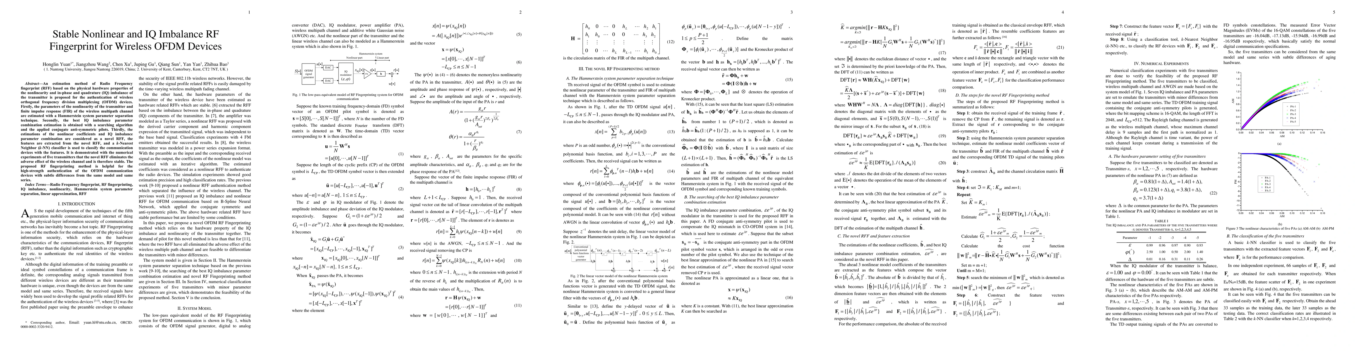 A novel Radio Frequency (RF) Fingerprinting method for wireless OFDM transmitters based on the hardware property of nonlinearity and IQ imbalance was proposed.