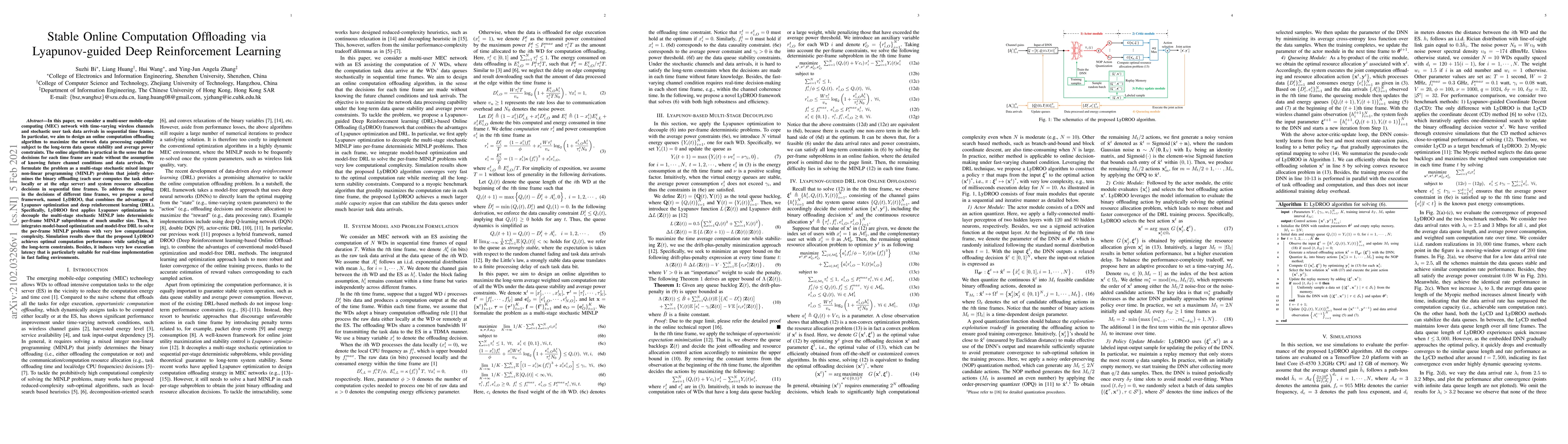This paper proposes LyDROO, a novel framework combining Lyapunov optimization and deep reinforcement learning to design an online computation offloading algorithm for multi-user mobile-edge computing networks. The framework decouples and solves multi-stage stochastic mixed integer nonlinear programming problems, achieving optimal performance while ensuring low latency and satisfying long-term stability and power constraints.