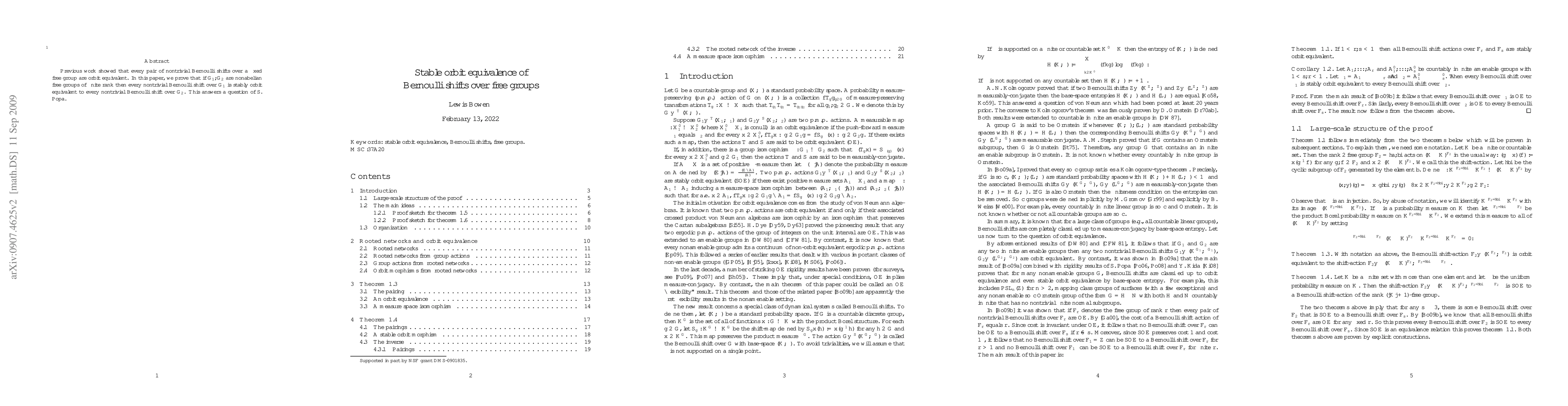 This paper proves that nontrivial Bernoulli shifts over any two nonabelian free groups of finite rank are stably orbit equivalent, resolving a question posed by S. Popa regarding the equivalence of such shifts.