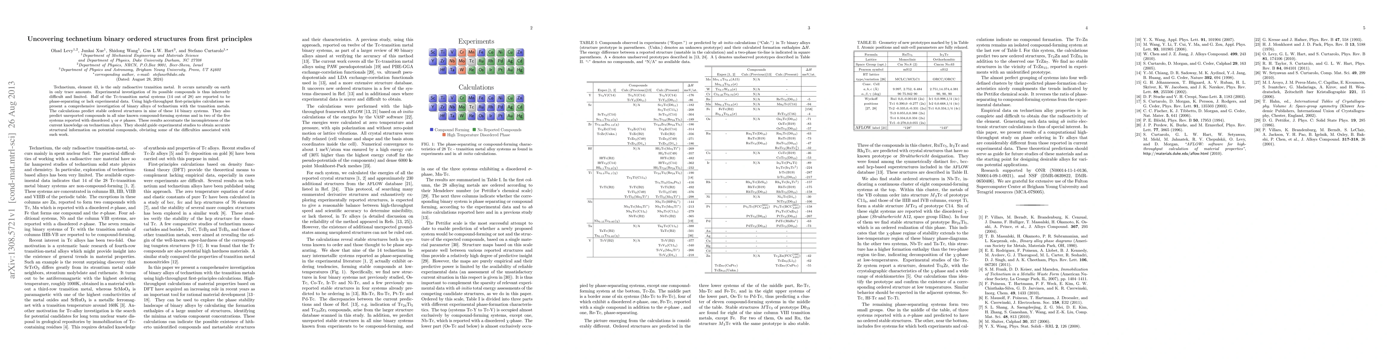 Researchers used first-principles calculations to predict stable structures in 9 out of 14 technetium binary alloys, revealing new potential compounds and guiding experimental studies to improve understanding of technetium's properties.