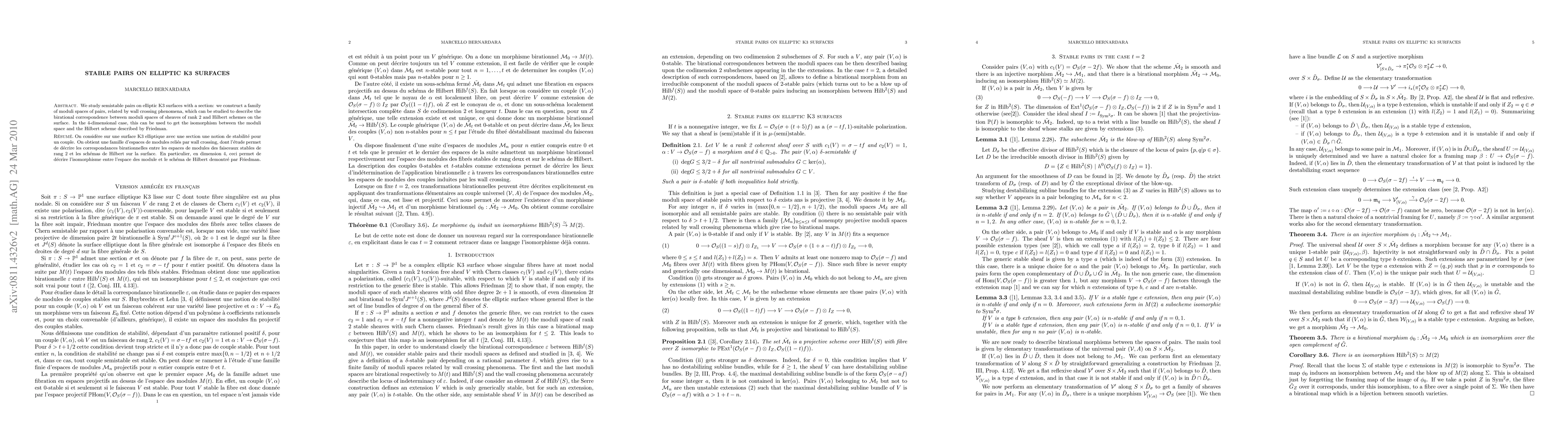 This paper constructs a family of moduli spaces for semistable pairs on elliptic K3 surfaces with a section, exploring wall crossing phenomena to describe birational correspondences between moduli spaces of rank 2 sheaves and Hilbert schemes, achieving the Friedman isomorphism in the 4-dimensional case.