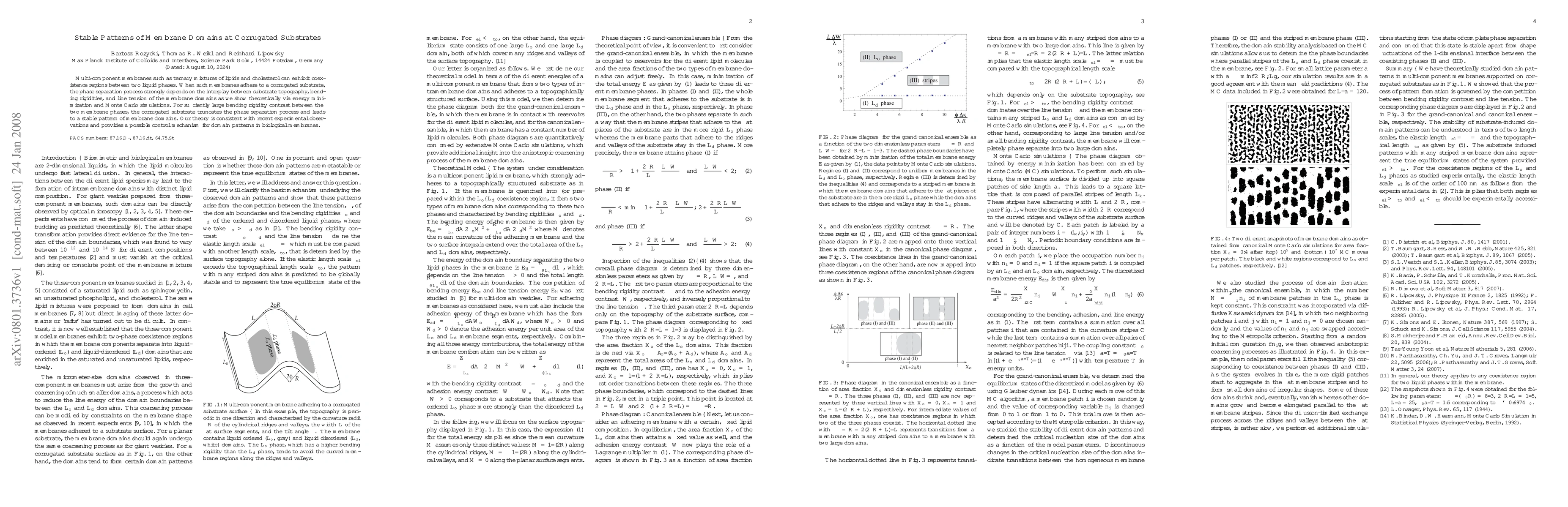 This paper theoretically investigates how the topography of corrugated substrates influences the phase separation in multi-component lipid membranes, demonstrating that large bending rigidity contrasts can stabilize membrane domain patterns. The study combines energy minimization and Monte Carlo simulations to support its findings, aligning with recent experimental observations and suggesting a method to control membrane domain configurations in biological systems.