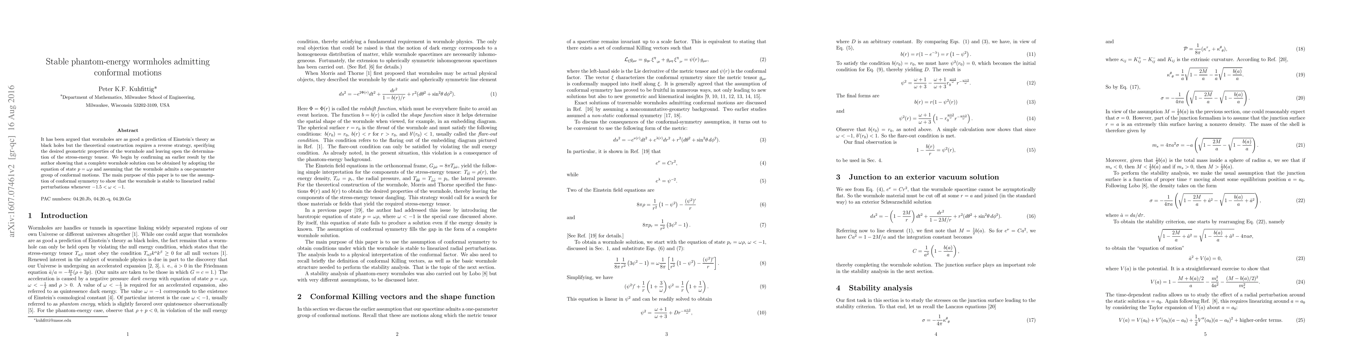 The study demonstrates the use of conformal symmetry to analyze wormhole stability