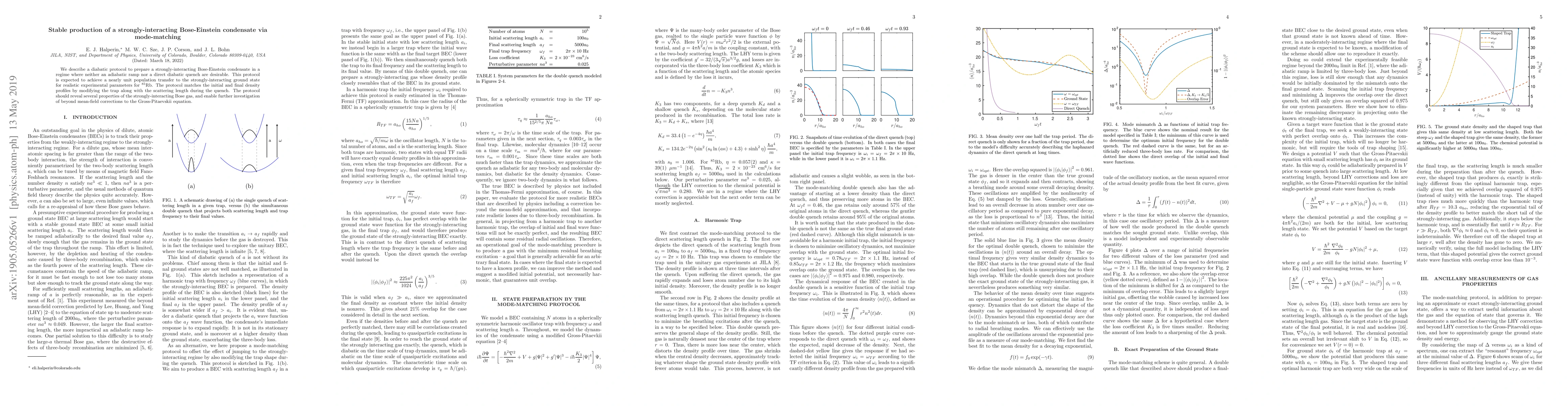 This paper presents a diabatic protocol for producing a strongly-interacting Bose-Einstein condensate using mode-matching, enabling nearly perfect population transfer to the ground state. The method modifies both the trap and scattering length during the quench, revealing properties of the strongly-interacting Bose gas and enabling studies of beyond mean-field corrections.