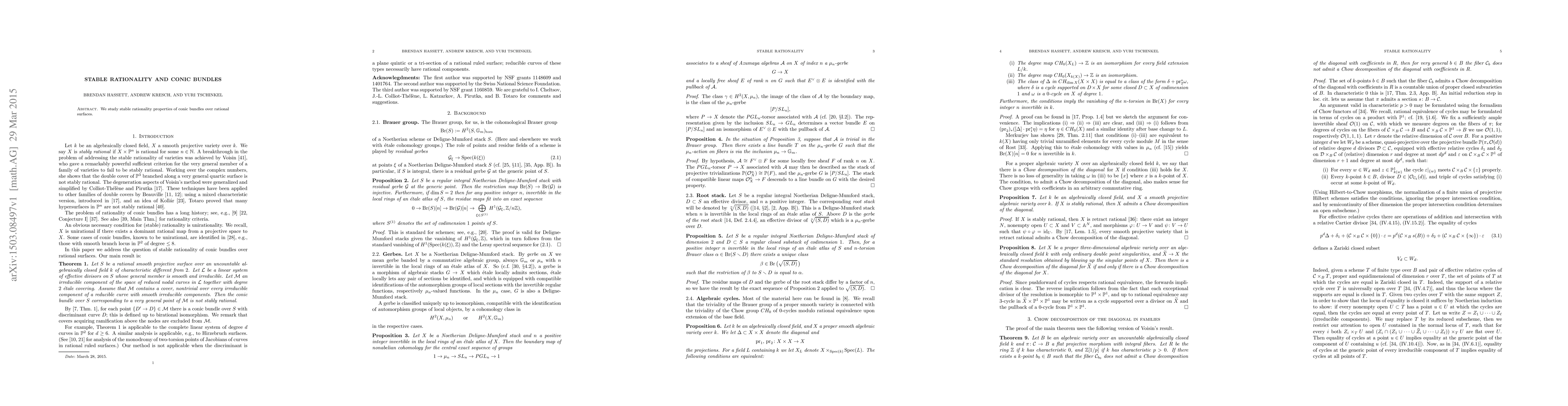 Summary: The paper investigates the stable rationality of conic bundles over rational surfaces, focusing on their geometric and algebraic properties. This research contributes to understanding the broader classification of these bundles and their implications in algebraic geometry.