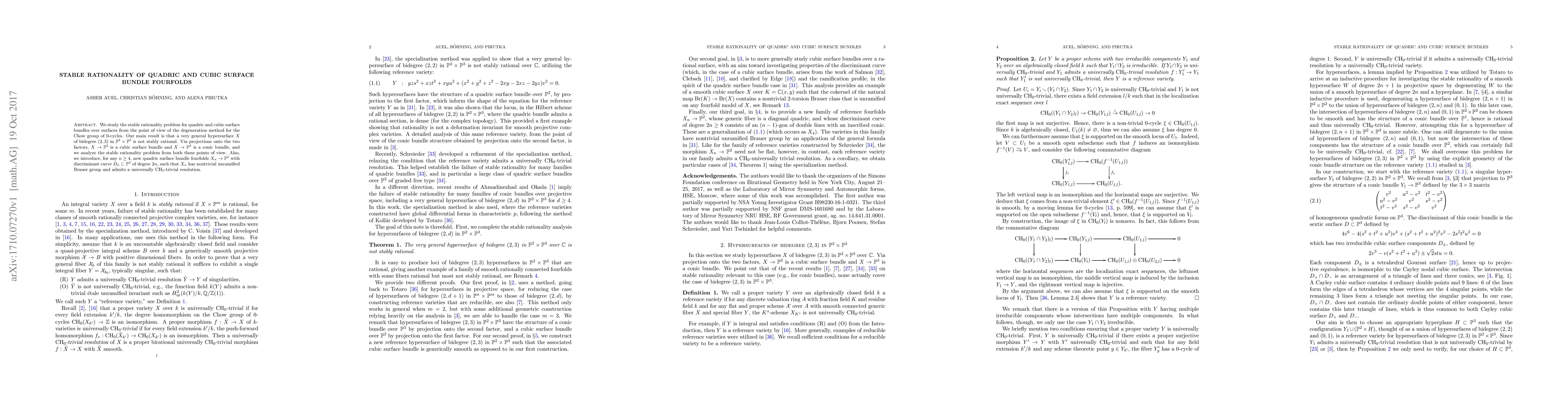 This paper investigates the stable rationality of quadric and cubic surface bundles over surfaces, concluding that a very general hypersurface of bidegree (2,3) in P^2 x P^3 is not stably rational. It also introduces new quadric surface bundle fourfolds with nontrivial unramified Brauer groups and universally CH_0-trivial resolutions.