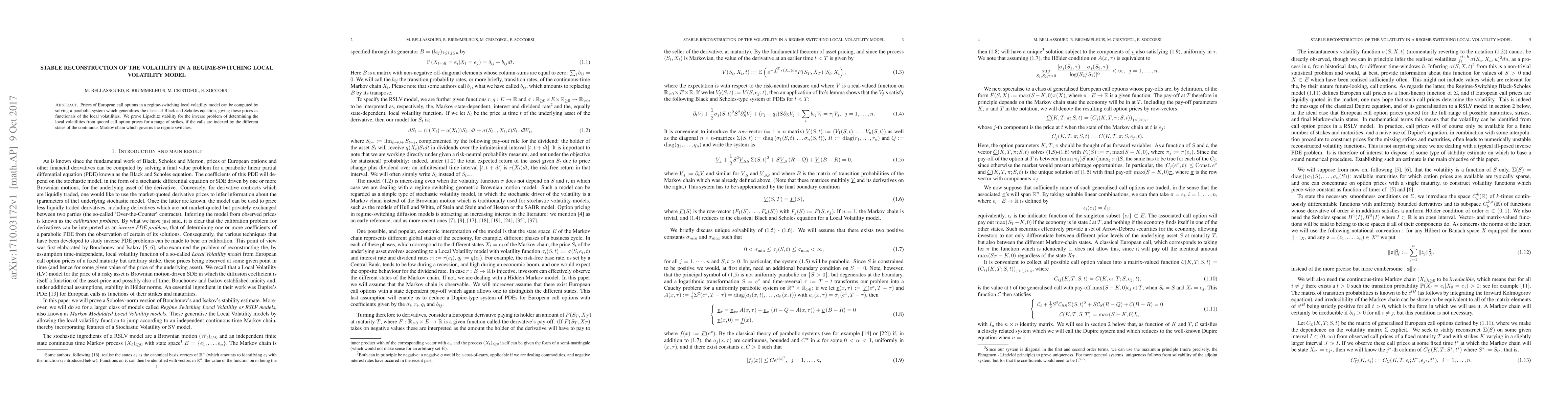 Prices of European call options in a regime-switching local volatility model can be computed by solving a parabolic system which generalises the classical Black and Scholes equation, giving these prices as functionals of the local volatilities. We prove Lipschitz stability for the inverse problem of determining the local volatilities from quoted call option prices for a range of strikes, if the calls are indexed by the different states of the continuous Markov chain which governs the regime switches.