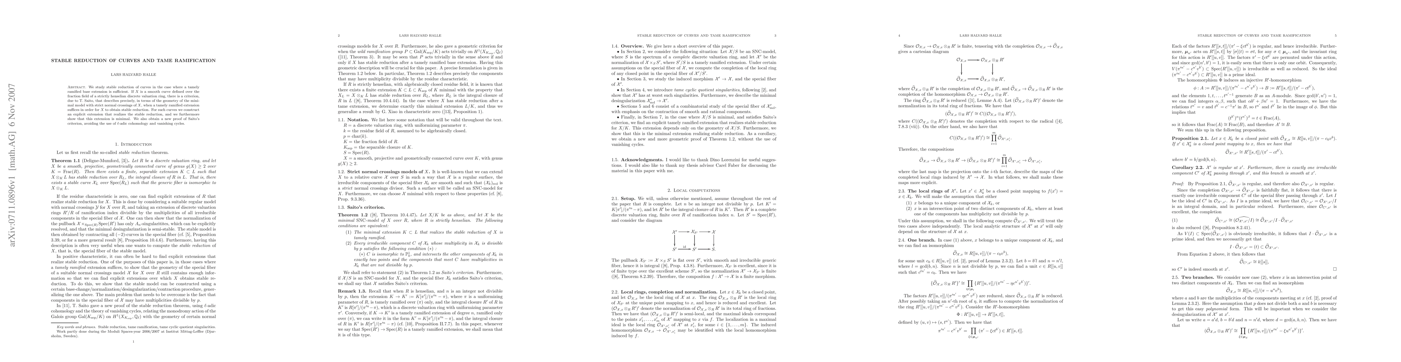 This paper explores stable reduction of smooth curves over a strictly henselian discrete valuation ring, focusing on tamely ramified base extensions. It provides a geometric proof of Saito's criterion for stable reduction and constructs a minimal extension realizing this reduction.