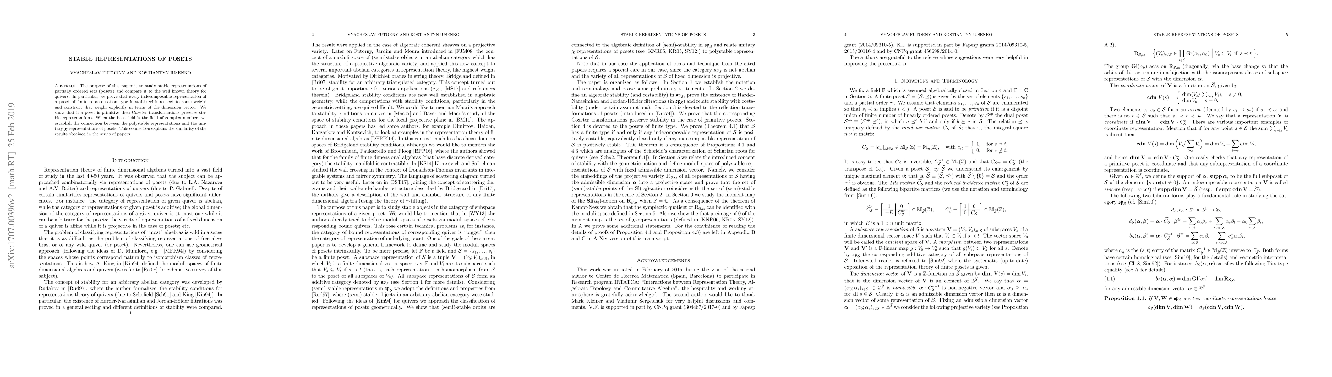This paper investigates stable representations of posets, proving that every indecomposable representation of a finite type poset is stable under certain weights. It establishes a connection between polystable representations and unitary $\chi$-representations in the complex field, highlighting similarities with the theory for quivers.