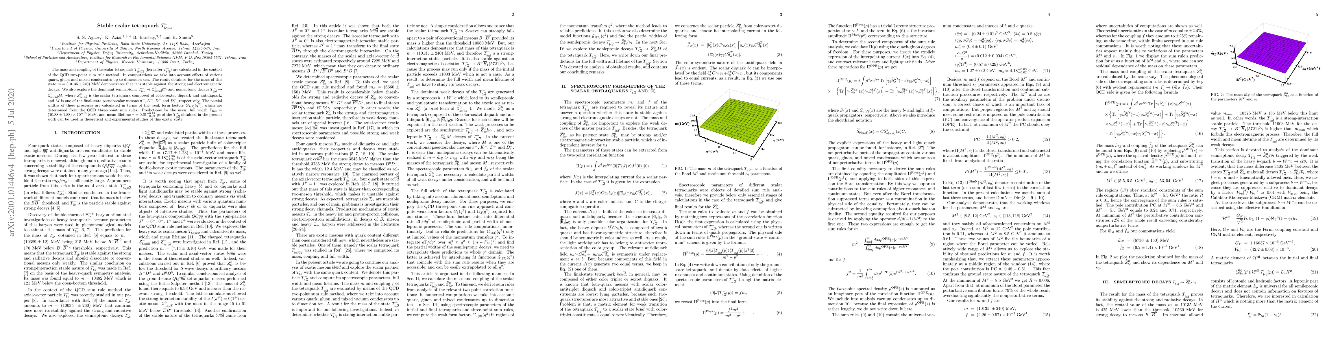 The mass and coupling of the scalar tetraquark $T_{bb;\overline{u}\overline{d }}^{-}$ (hereafter $T_{b:\overline{d}}^{-} $) are calculated in the context of the QCD two-point sum rule method. In computations we take into account effects of various quark, gluon and mixed condensates up to dimension ten. The result obtained for the mass of this state $m=(10135\pm 240)~\mathrm{MeV} $ demonstrates that it is stable against the strong and electromagnetic decays. We also explore the dominant semileptonic $T_{b:\overline{d}}^{-} \to \widetilde{Z}_{bc;\bar{u}\bar{d}}^{0}l\overline{\nu }_{l}$ and nonleptonic decays $T_{b:\overline{d}}^{-} \to \widetilde{Z}_{bc;\bar{u}\bar{ d}}^{0}M$, where $\widetilde{Z}_{bc;\bar{u}\bar{d}}^{0}$ is the scalar tetraquark composed of color-sextet diquark and antidiquark, and $M$ is one of the final-state pseudoscalar mesons $\pi^{-}, K^{-}, D^{-}$ and $D_s^{-}$ , respectively. The partial widths of these processes are calculated in terms of the weak form factors $G_{1(2)}(q^2)$, which are determined from the QCD three-point sum rules. Predictions for the mass, full width $\Gamma _{\mathrm{full}} =(10.88\pm 1.88)\times 10^{-10}~\mathrm{MeV}$, and mean lifetime $\tau=0.61_{-0.09}^{+0.13}~\mathrm{ps}$ of the $T_{b:\overline{d} }^{-}$ obtained in the present work can be used in theoretical and experimental studies of this exotic state.