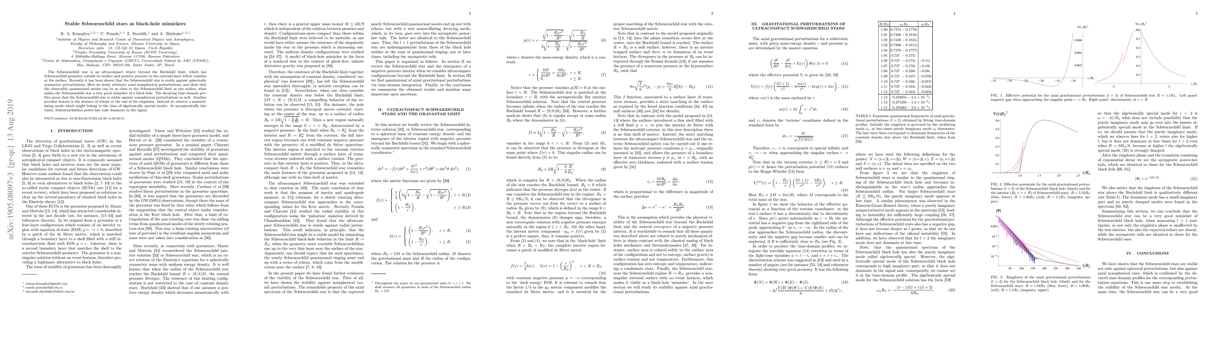 This paper investigates the stability and observational characteristics of Schwarzschild stars, demonstrating they can mimic black holes closely due to their quasinormal modes resembling those of Schwarzschild black holes. The study finds that Schwarzschild stars are stable against nonspherical perturbations and lack echoes, instead showing a nonoscillating mode and power-law tails at late times.