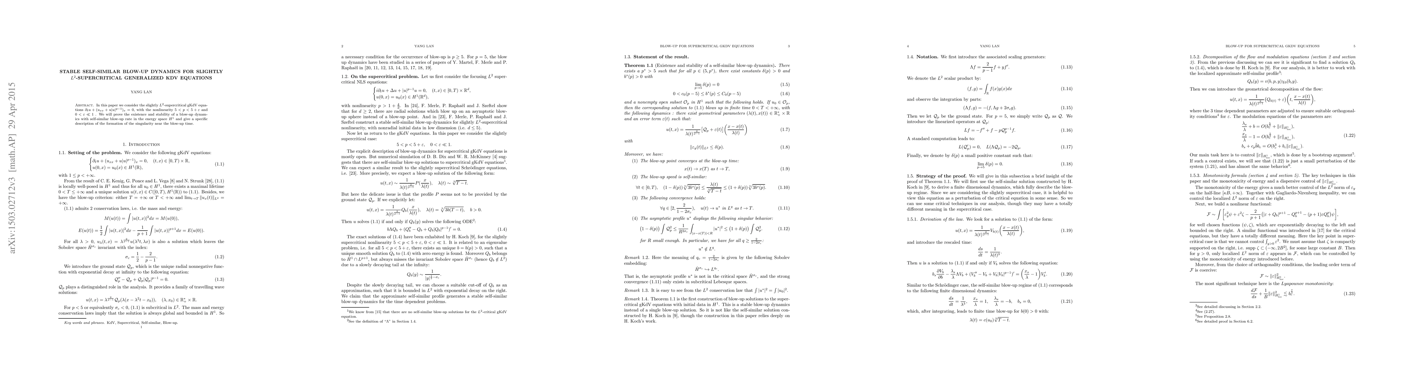 This paper proves the existence and stability of a self-similar blow-up dynamic for slightly $L^2$-supercritical generalized KdV equations with nonlinearity $5<p<5+\varepsilon$. It describes the formation of singularities near the blow-up time in the $H^1$ energy space.