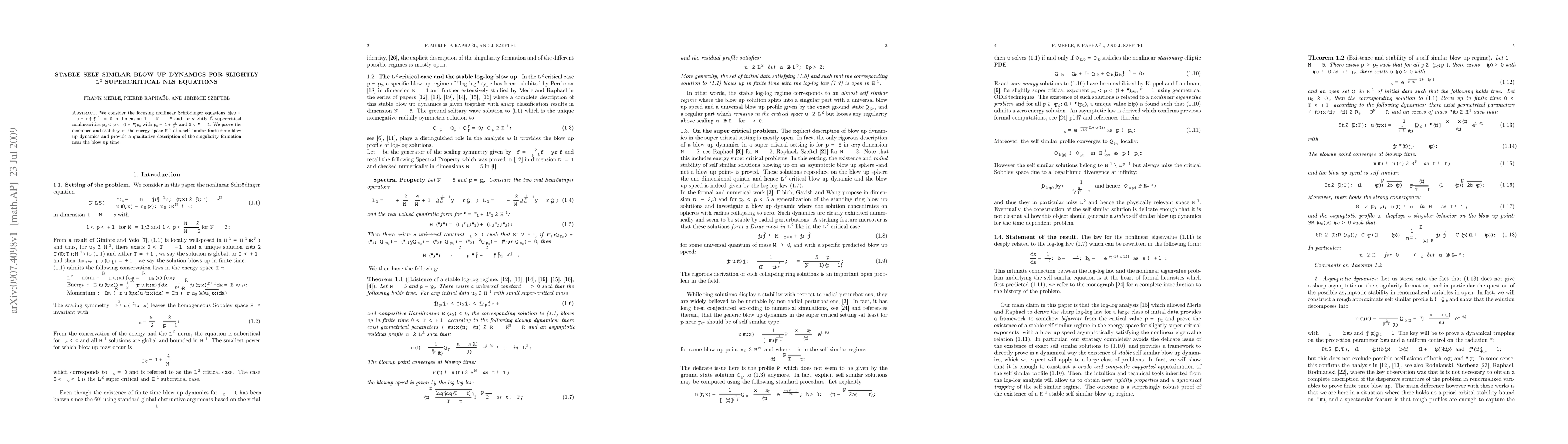 This paper proves the existence and stability of self-similar finite time blow-up solutions for focusing nonlinear Schrödinger equations in dimensions 1 to 5, under slightly $L^2$ supercritical nonlinearities. It provides a qualitative description of the singularity formation near the blow-up time.