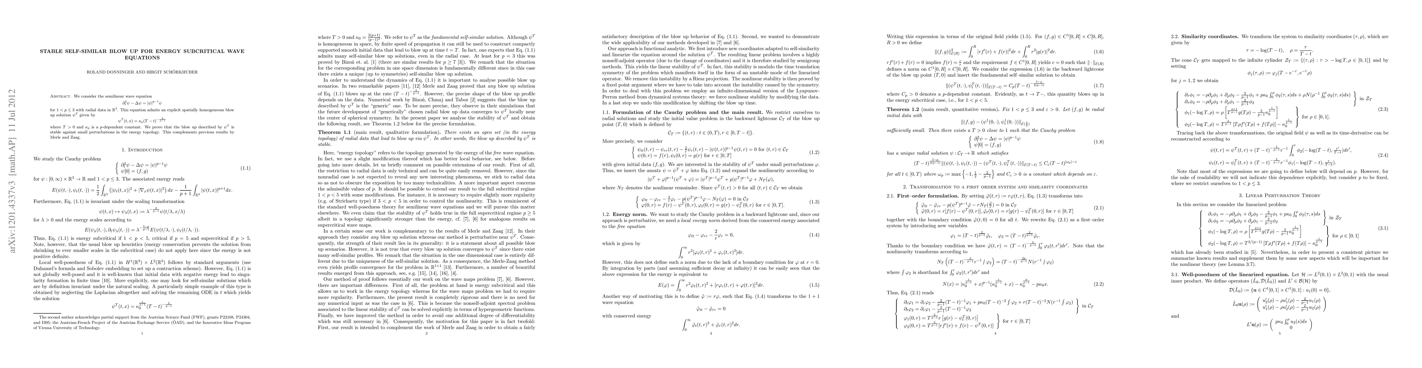 We consider the semilinear wave equation \[ \partial_t^2 \psi-\Delta \psi=|\psi|^{p-1}\psi \] for $1
