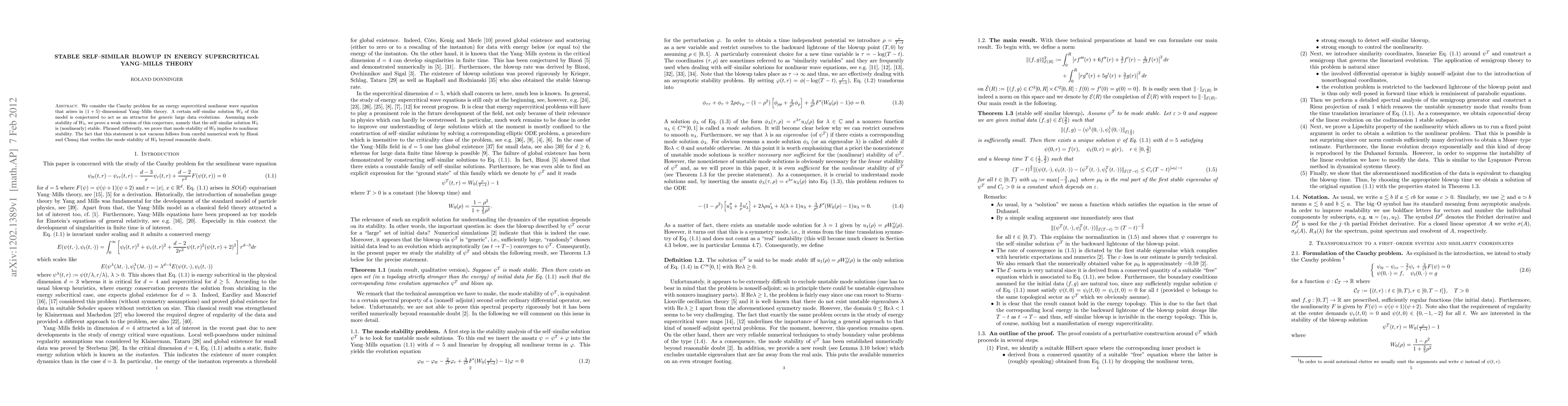 We consider the Cauchy problem for an energy supercritical nonlinear wave equation that arises in $(1+5)$--dimensional Yang--Mills theory. A certain self--similar solution $W_0$ of this model is conjectured to act as an attractor for generic large data evolutions. Assuming mode stability of $W_0$, we prove a weak version of this conjecture, namely that the self--similar solution $W_0$ is (nonlinearly) stable. Phrased differently, we prove that mode stability of $W_0$ implies its nonlinear stability. The fact that this statement is not vacuous follows from careful numerical work by Bizo\'n and Chmaj that verifies the mode stability of $W_0$ beyond reasonable doubt.
