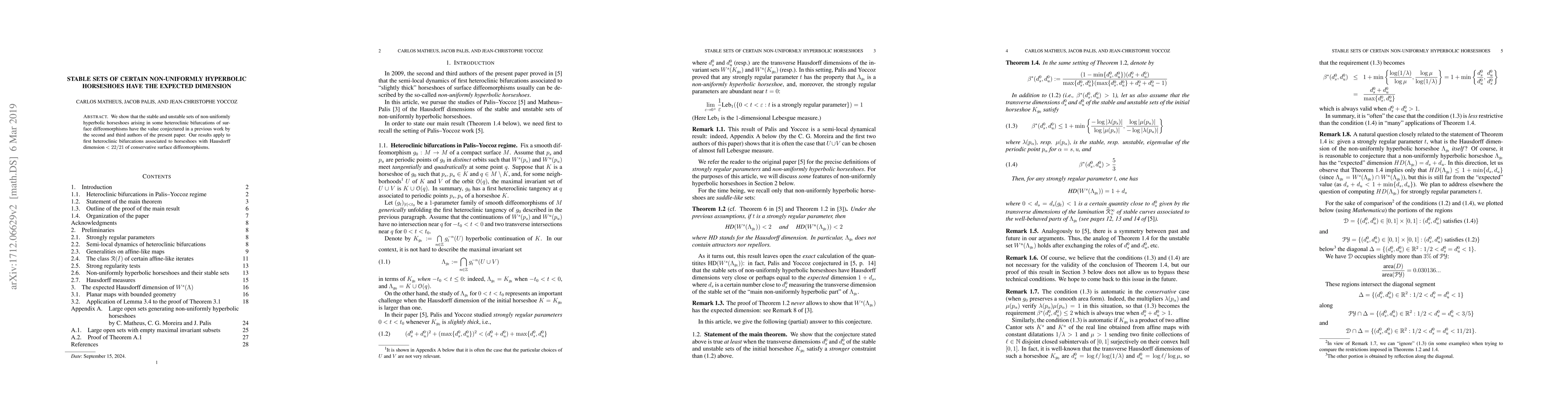 Summary: This paper proves that stable and unstable sets in non-uniformly hyperbolic horseshoes, formed during certain heteroclinic bifurcations in surface diffeomorphisms, possess the expected dimension, as previously conjectured by the authors. The findings apply to first heteroclinic bifurcations of horseshoes with Hausdorff dimension less than 22/21.