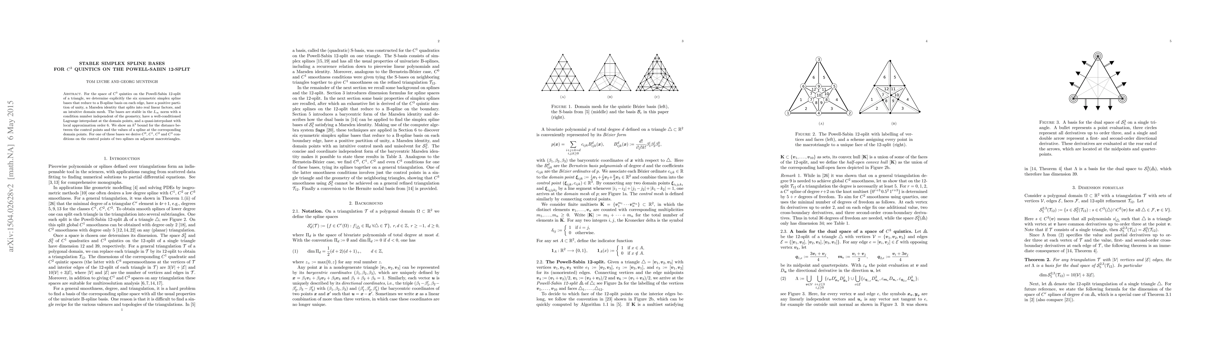 For the space of $C^3$ quintics on the Powell-Sabin 12-split of a triangle, we determine explicitly the six symmetric simplex spline bases that reduce to a B-spline basis on each edge, have a positive partition of unity, a Marsden identity that splits into real linear factors, and an intuitive domain mesh. The bases are stable in the $L_\infty$ norm with a condition number independent of the geometry, have a well-conditioned Lagrange interpolant at the domain points, and a quasi-interpolant with local approximation order 6. We show an $h^2$ bound for the distance between the control points and the values of a spline at the corresponding domain points. For one of these bases we derive $C^0$, $C^1$, $C^2$ and $C^3$ conditions on the control points of two splines on adjacent macrotriangles.