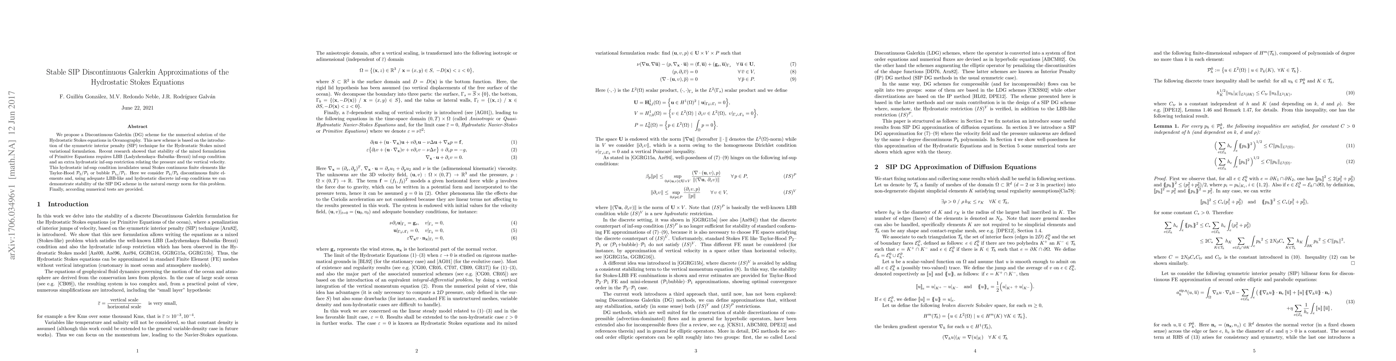 This paper proposes a Discontinuous Galerkin (DG) scheme with symmetric interior penalty for the Hydrostatic Stokes equations, ensuring stability through LBB and hydrostatic inf-sup conditions, and demonstrates its effectiveness via numerical tests. The SIP DG method is shown to be stable in the natural energy norm, overcoming limitations of traditional continuous finite elements.