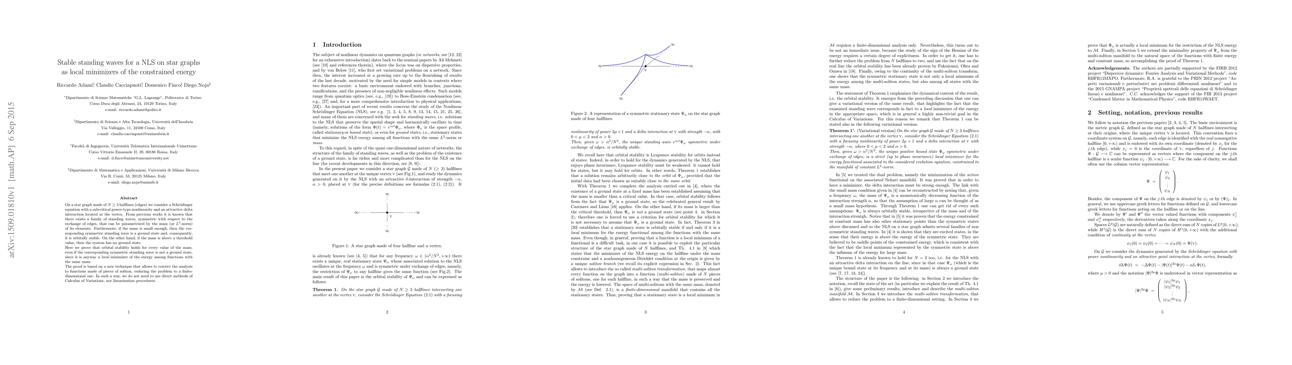 On a star graph made of $N \geq 3$ halflines (edges) we consider a Schr\"odinger equation with a subcritical power-type nonlinearity and an attractive delta interaction located at the vertex. From previous works it is known that there exists a family of standing waves, symmetric with respect to the exchange of edges, that can be parametrized by the mass (or $L^2$-norm) of its elements. Furthermore, if the mass is small enough, then the corresponding symmetric standing wave is a ground state and, consequently, it is orbitally stable. On the other hand, if the mass is above a threshold value, then the system has no ground state. Here we prove that orbital stability holds for every value of the mass, even if the corresponding symmetric standing wave is not a ground state, since it is anyway a {\em local} minimizer of the energy among functions with the same mass. The proof is based on a new technique that allows to restrict the analysis to functions made of pieces of soliton, reducing the problem to a finite-dimensional one. In such a way, we do not need to use direct methods of Calculus of Variations, nor linearization procedures.