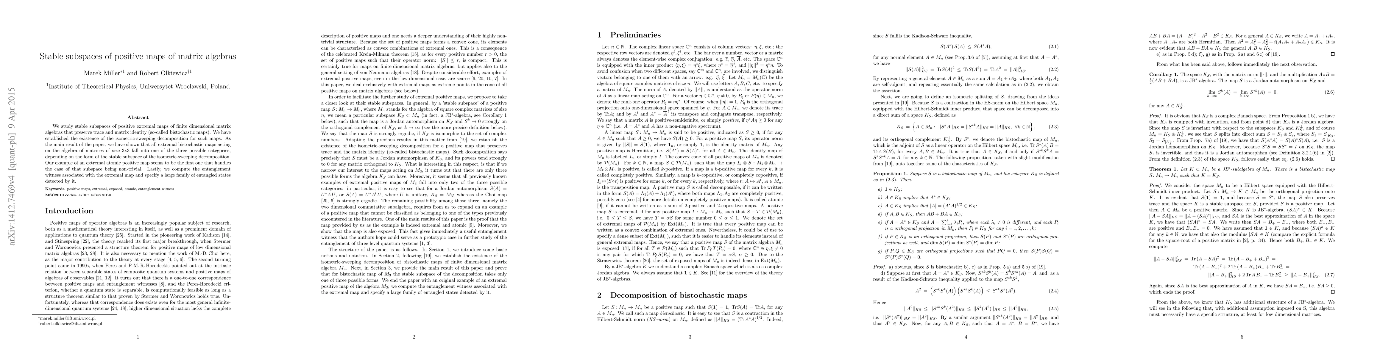 This paper investigates stable subspaces in positive extremal bistochastic maps of 3x3 matrix algebras, establishing an isometric-sweeping decomposition. It reveals three categories of such maps based on their stable subspaces and identifies the first non-trivial example of an extremal atomic positive map, along with the computation of an entanglement witness for a related family of entangled states.