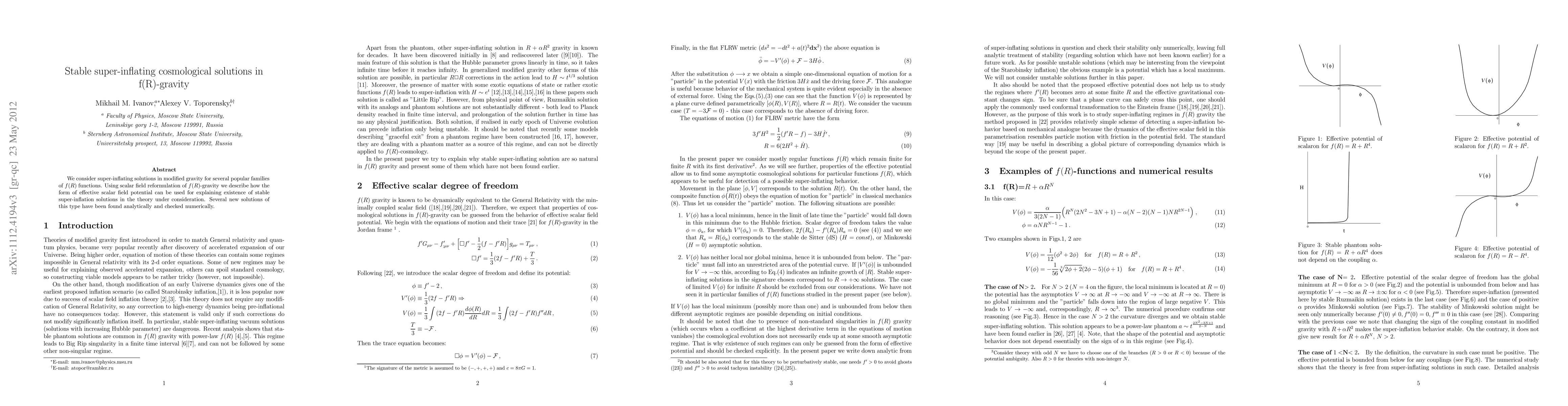 This paper explores stable super-inflating solutions in modified $f(R)$-gravity, demonstrating how effective scalar field potentials can explain these solutions. New analytical and numerically verified solutions are presented for various $f(R)$ functions.