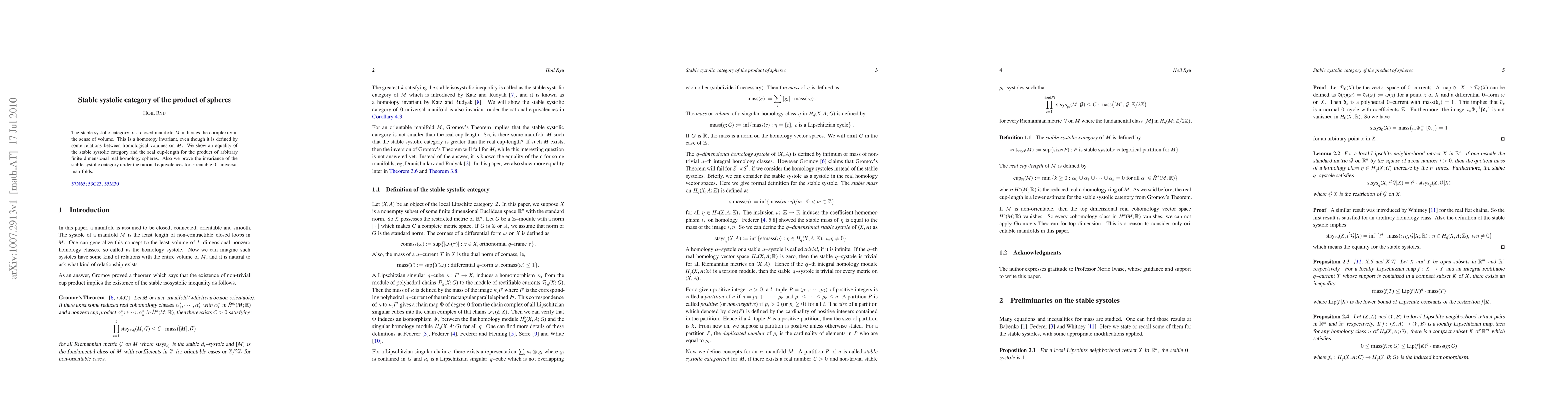 The stable systolic category of a closed manifold M indicates the complexity in the sense of volume. This is a homotopy invariant, even though it is defined by some relations between homological volumes on M. We show an equality of the stable systolic category and the real cup-length for the product of arbitrary finite dimensional real homology spheres. Also we prove the invariance of the stable systolic category under the rational equivalences for orientable 0-universal manifolds.