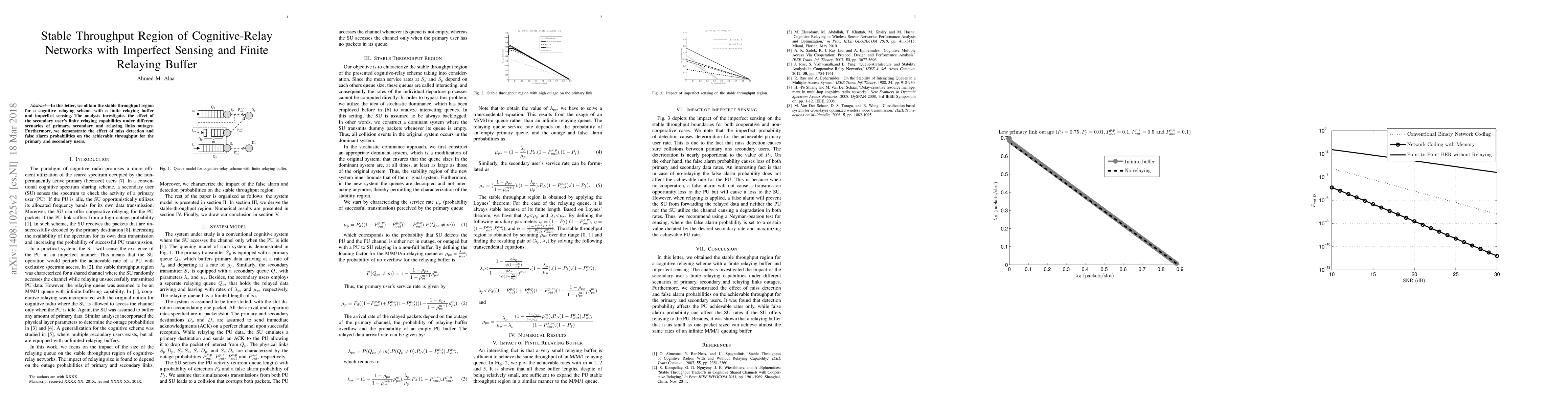 This paper determines the stable throughput region for cognitive-relay networks with finite relaying buffers and imperfect sensing. It examines the impact of link outages and detection errors on the throughput of primary and secondary users.